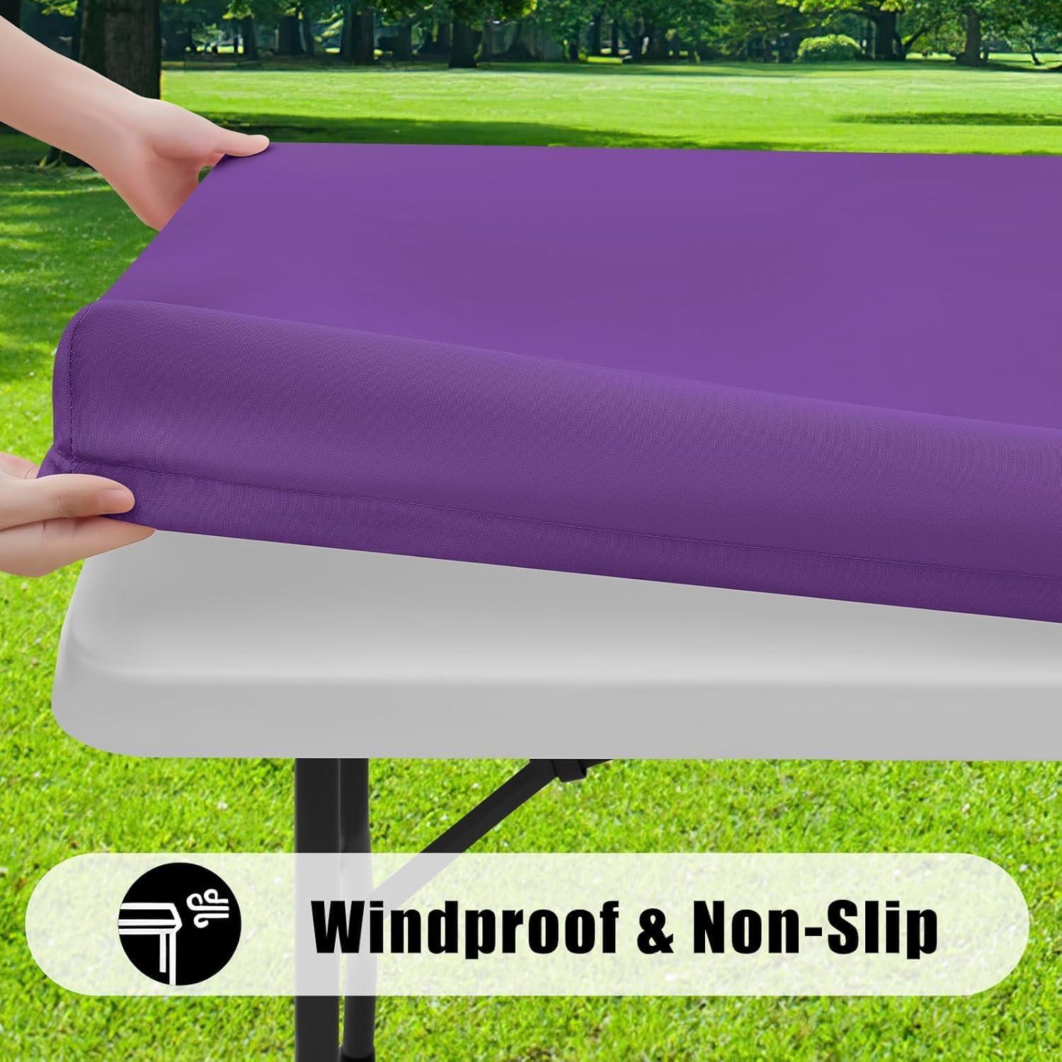 Smiry 6 Pack Rectangle Picnic Table Cloth, Waterproof Elastic Fitted Tablecloths, Washable Polyester Rectangular Patio Table Cover for Camping, Indoor and Outdoor (Black, 30"x72")(Purple)