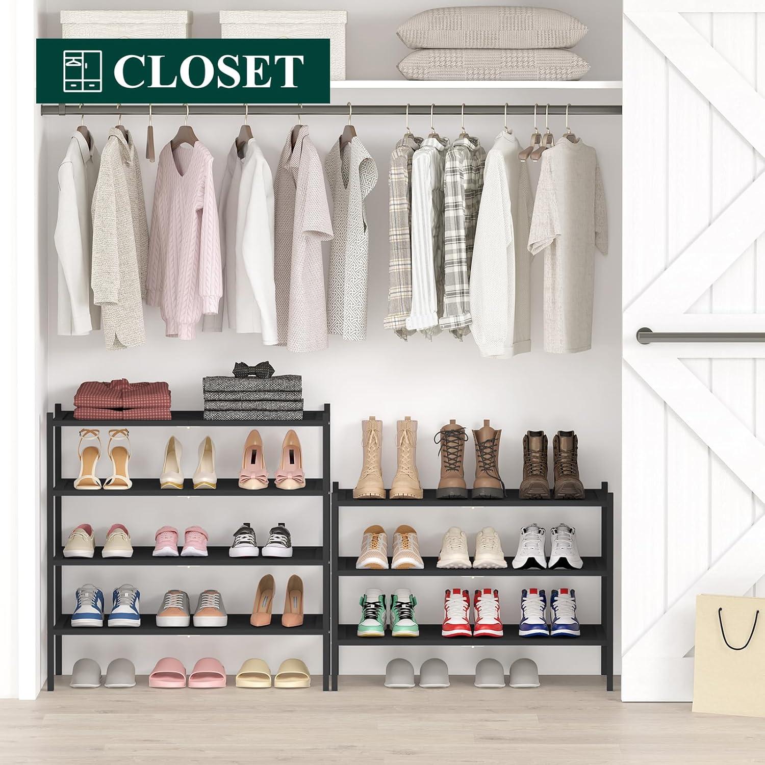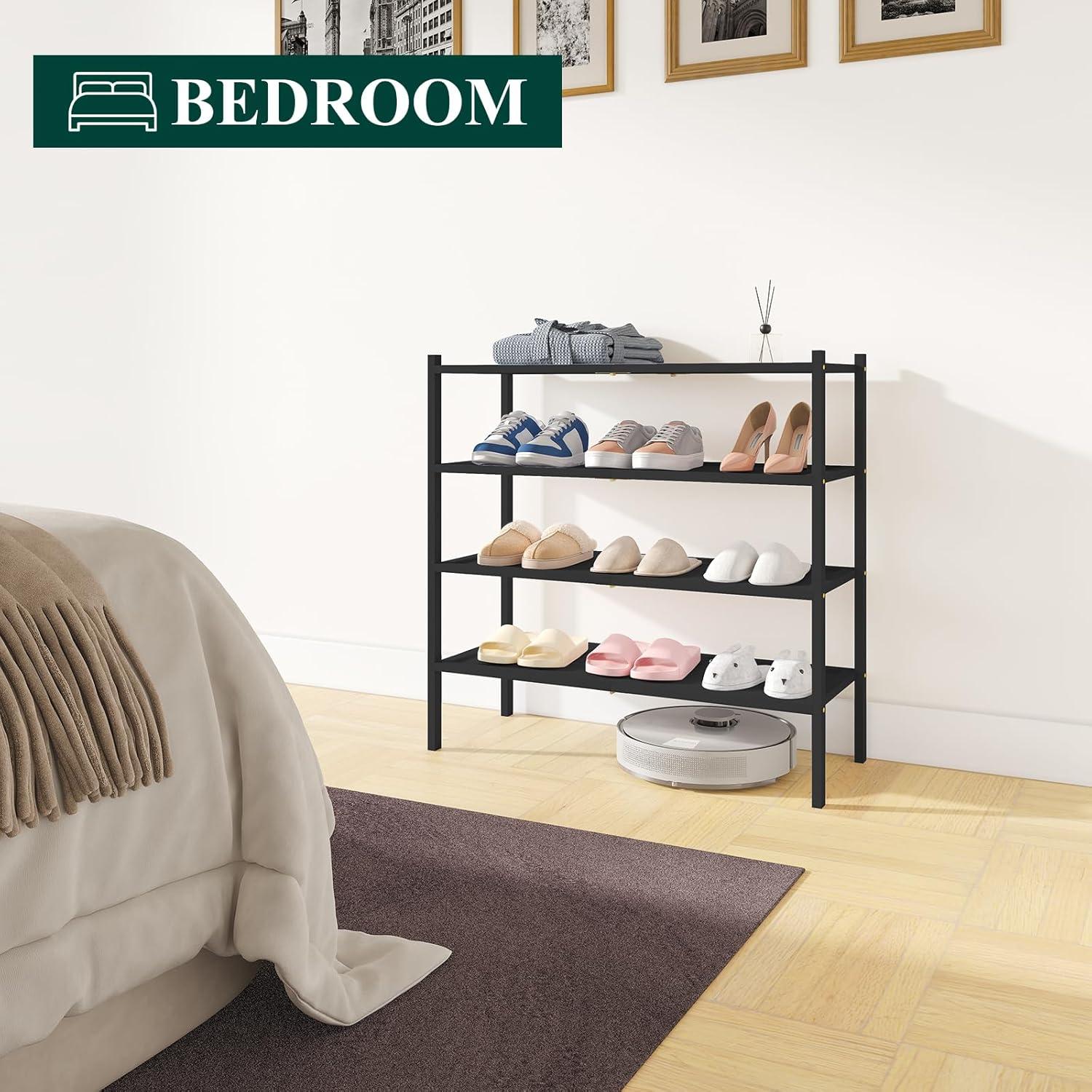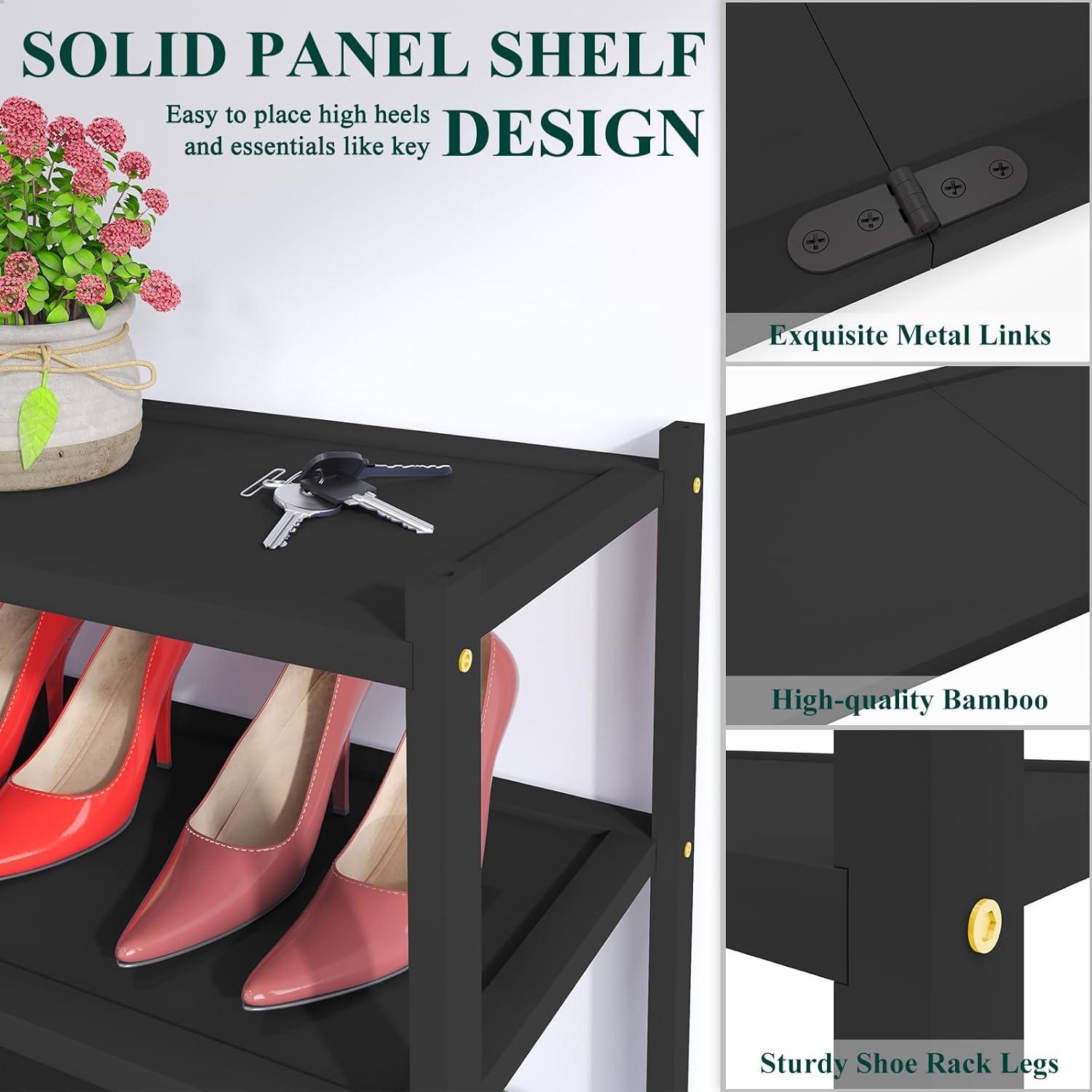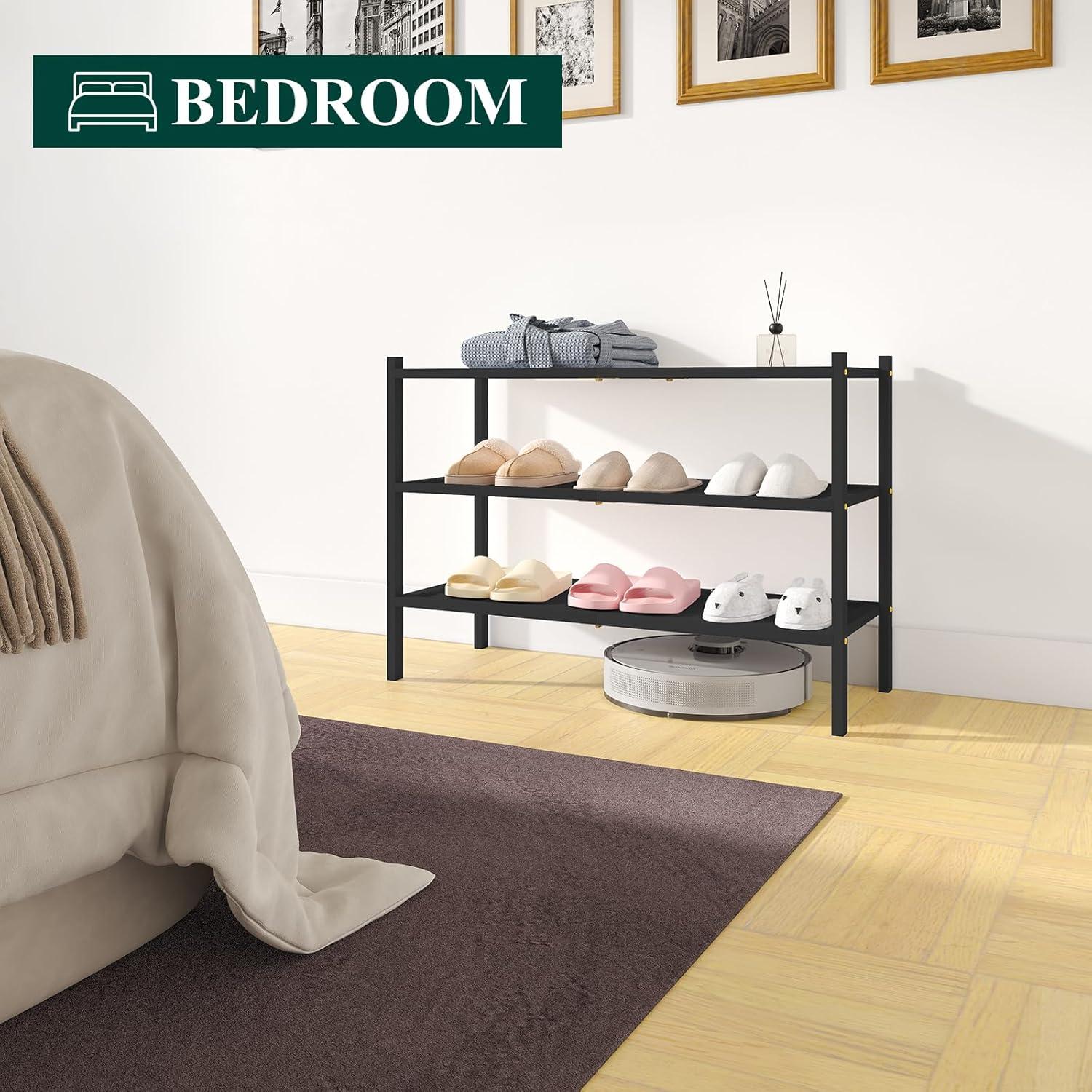Smiry Bamboo Shoe Rack, 3 Tier Shoe Organizer for Entryway & Closet, Stackable Free Standing Storage Shelf for Shoes, Bags & Plants, Grey(Black)