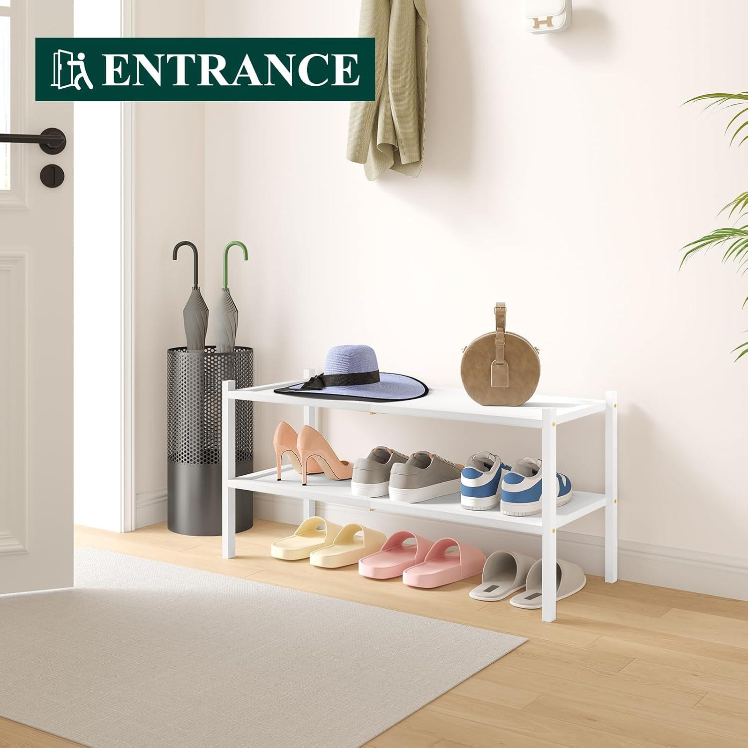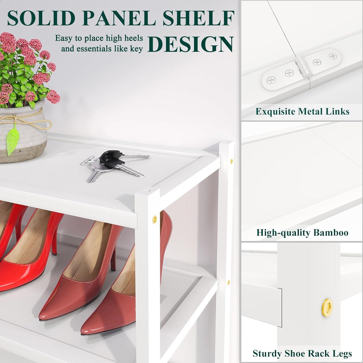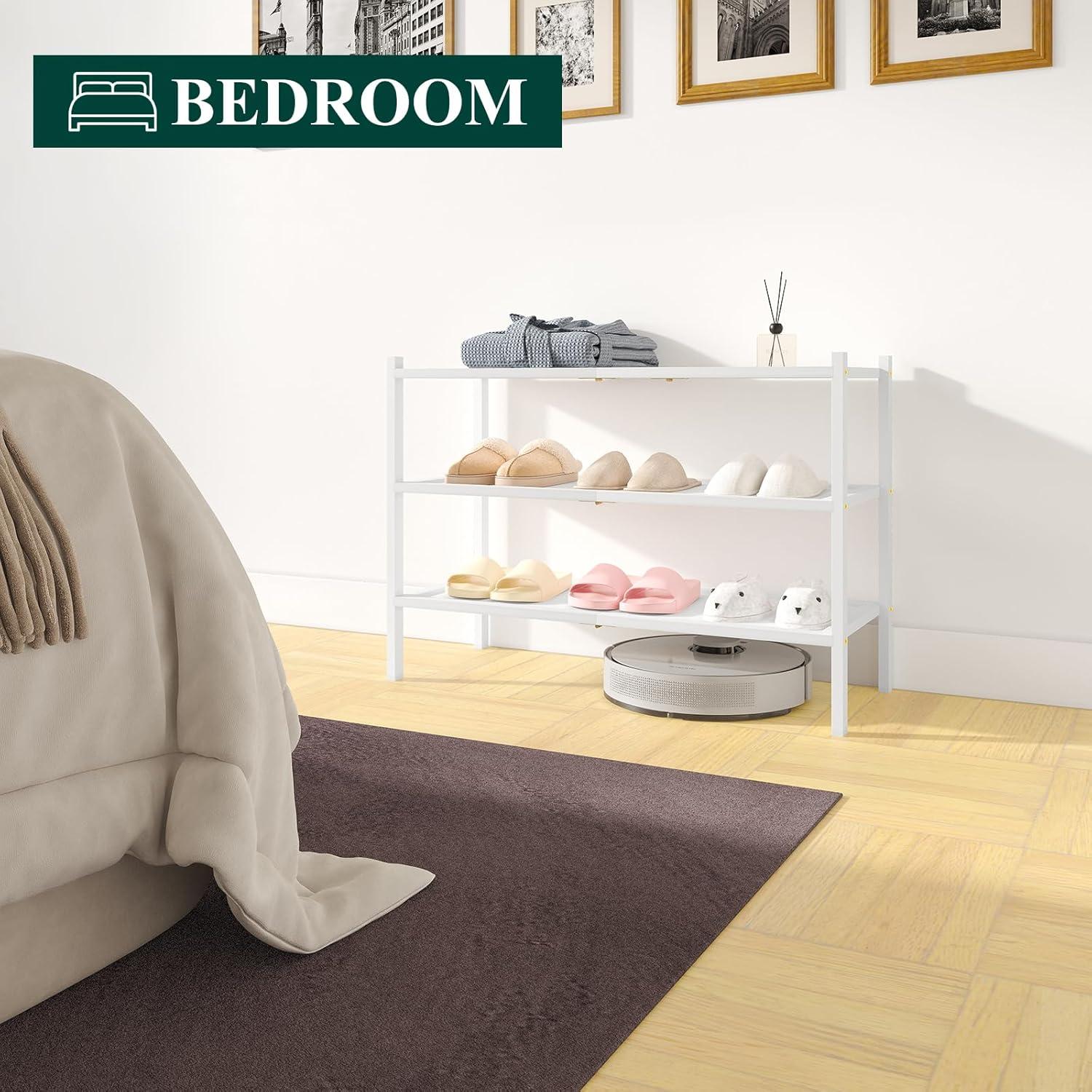 Smiry Bamboo Shoe Rack, 3 Tier Shoe Organizer for Entryway & Closet, Stackable Free Standing Storage Shelf for Shoes, Bags & Plants, Grey(White)