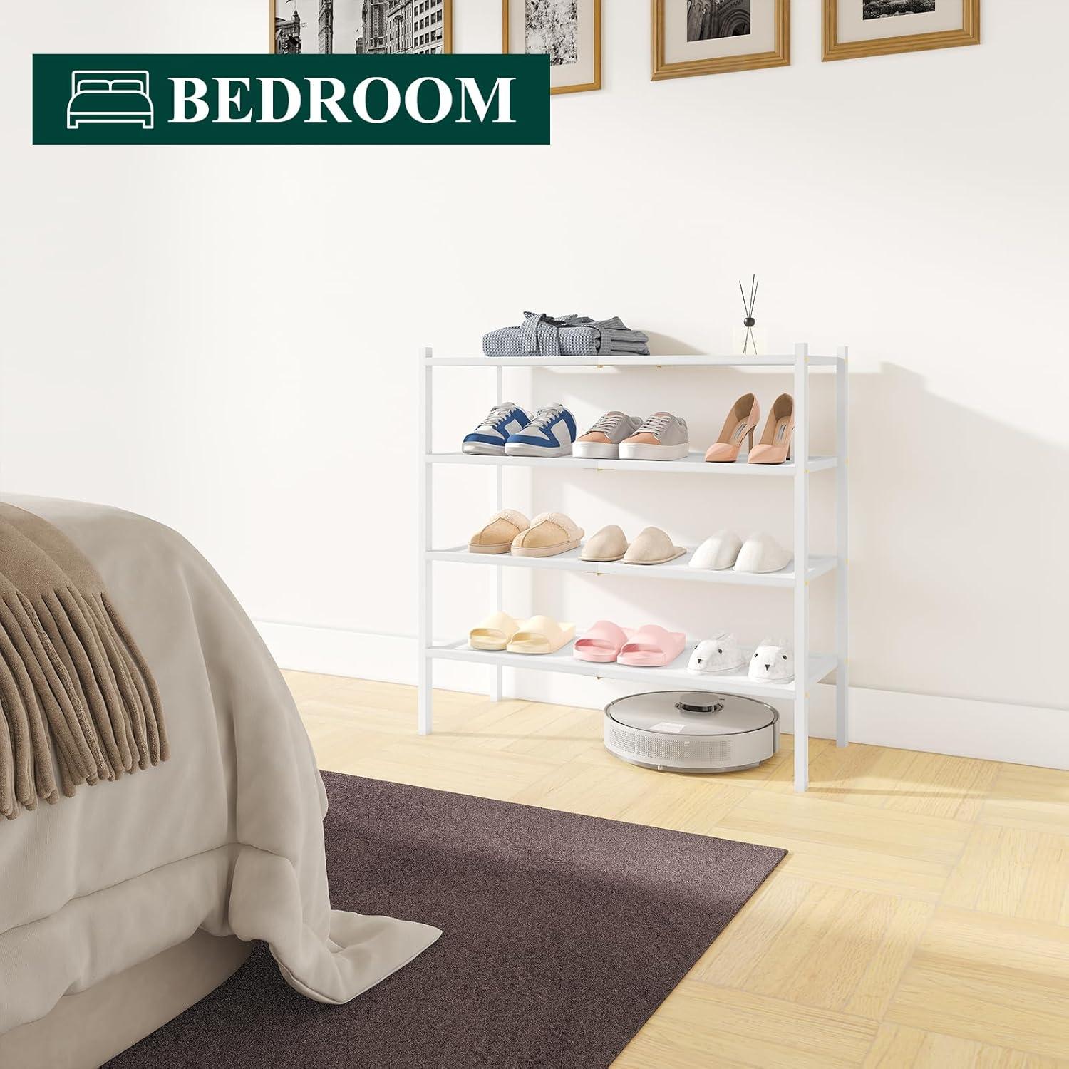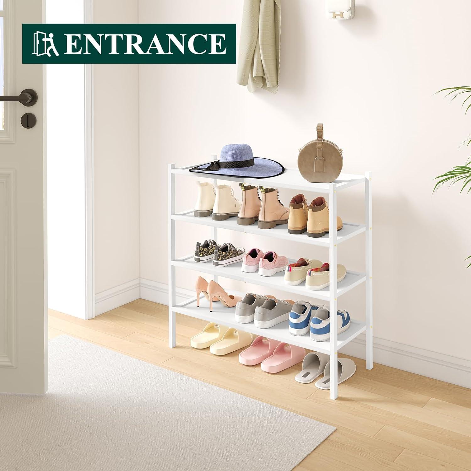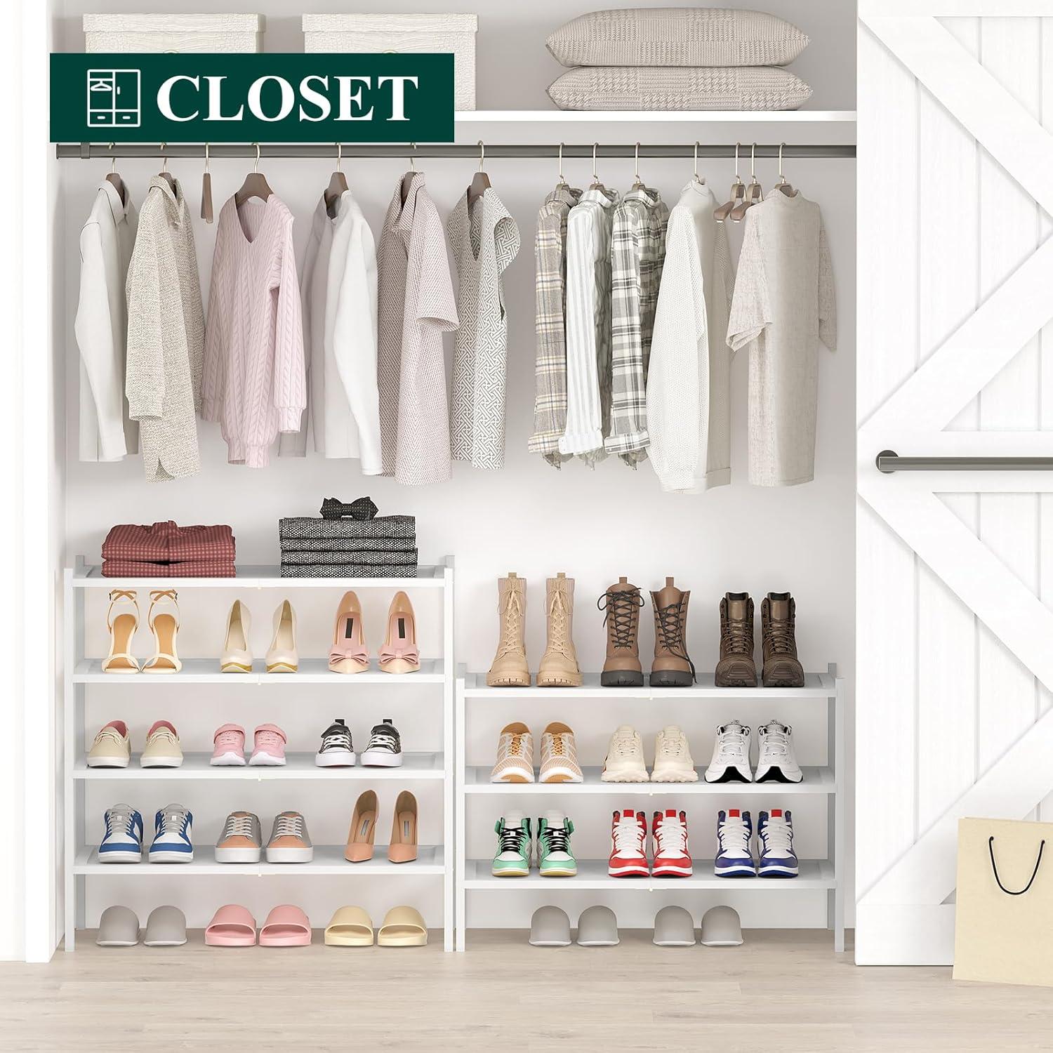 Smiry Bamboo Shoe Rack, 3 Tier Shoe Organizer for Entryway & Closet, Stackable Free Standing Storage Shelf for Shoes, Bags & Plants, Grey(White)
