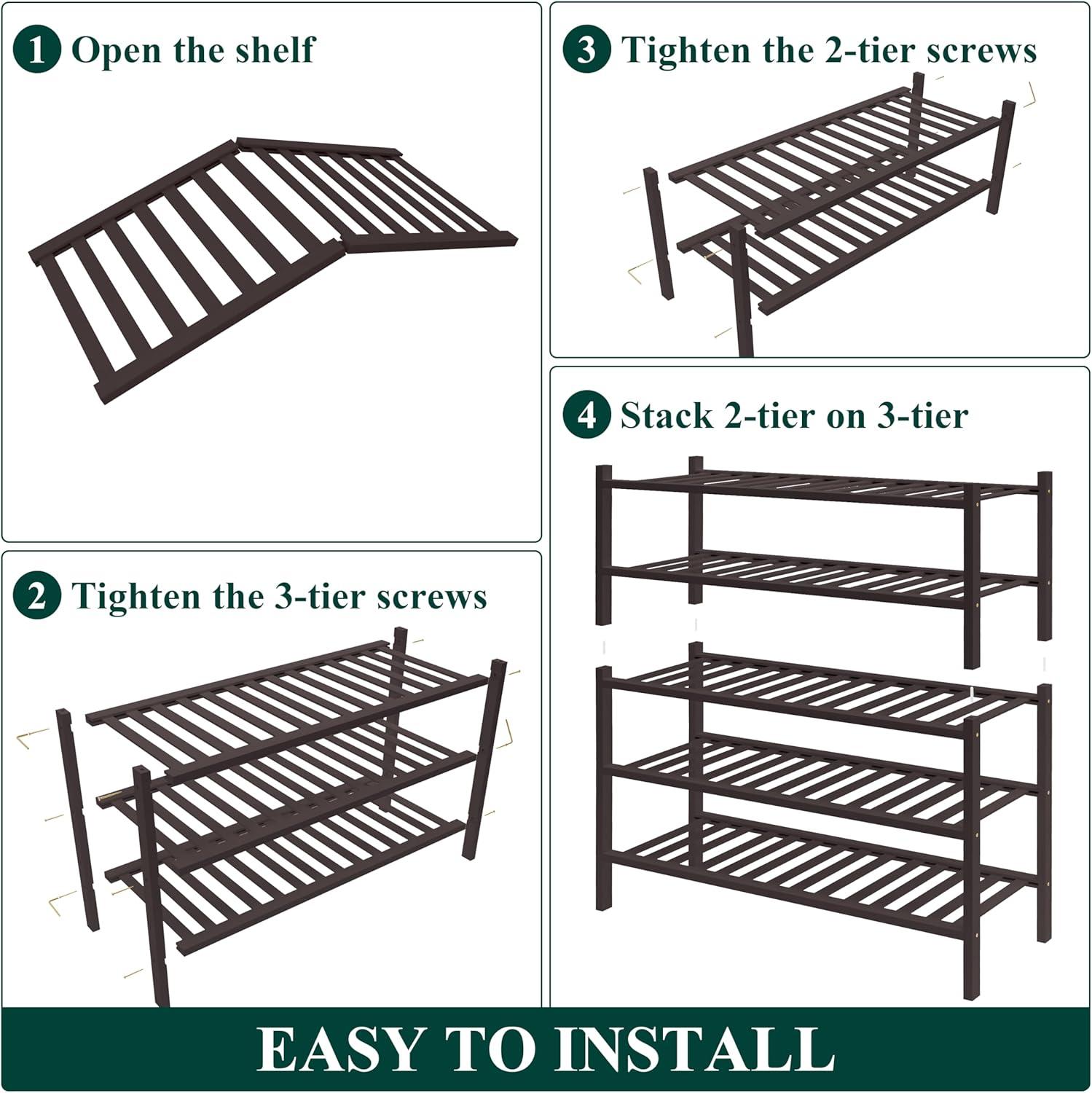 Sturdy Construction: Built with reinforced bamboo, our shoe organizer features a thick, durable frame, sturdy shelves, and solid legs for superior stability