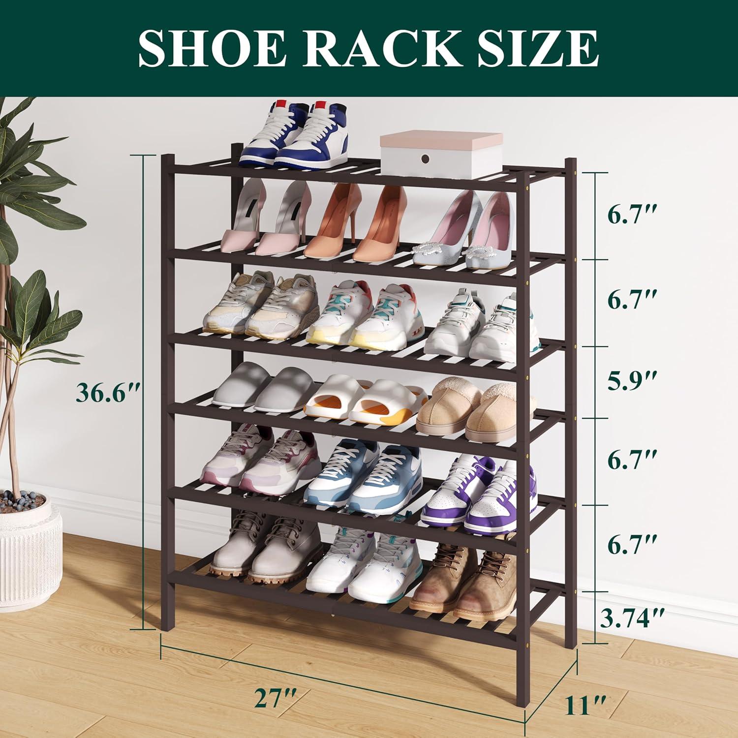 Smiry Bamboo Shoe Rack for Closet, 5 Tier Wooden Stackable Shoe Organizer, Free Standing Shoes Storage Shelf for Entryway, Front Door Entrance, Brown(Black)