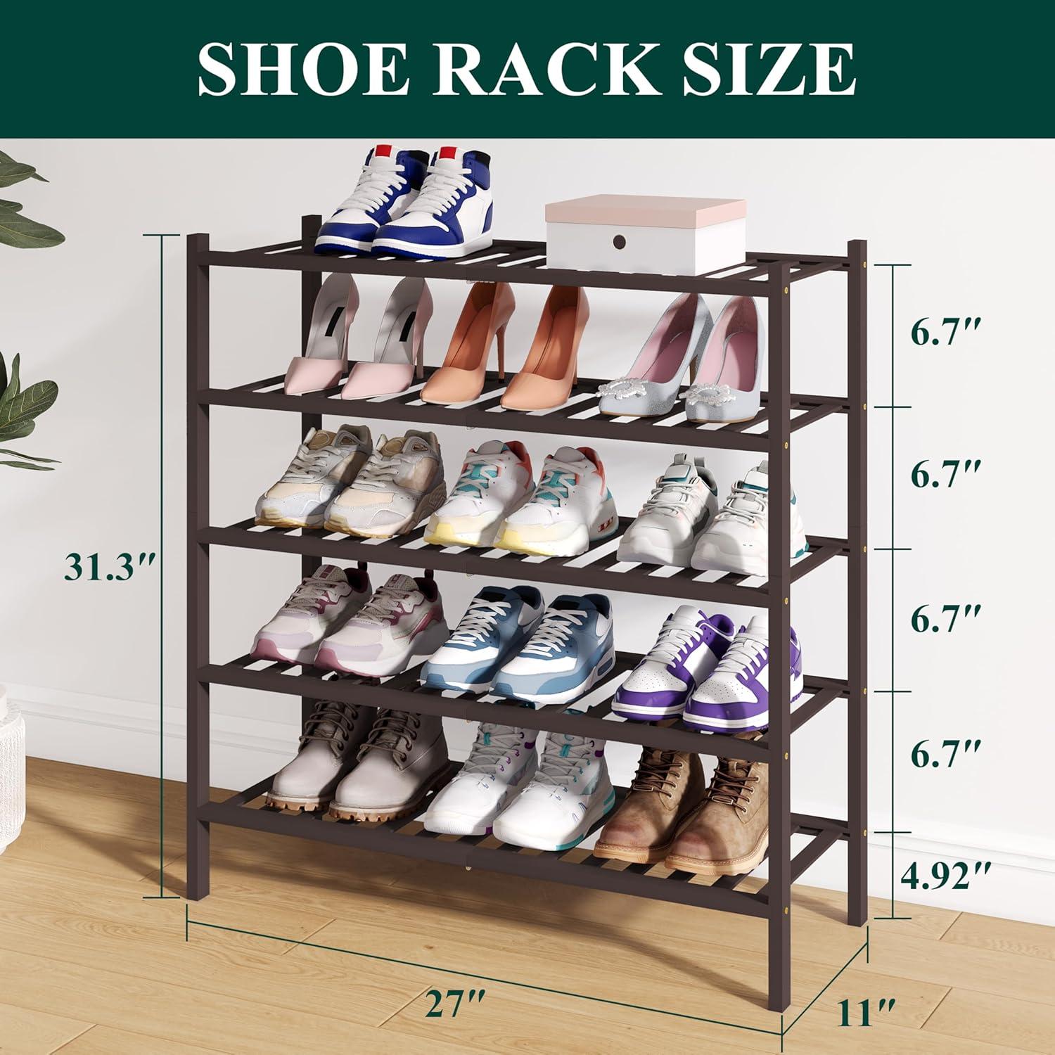 Smiry Bamboo Shoe Rack for Closet, 5 Tier Wooden Stackable Shoe Organizer, Free Standing Shoes Storage Shelf for Entryway, Front Door Entrance, Brown(Green)