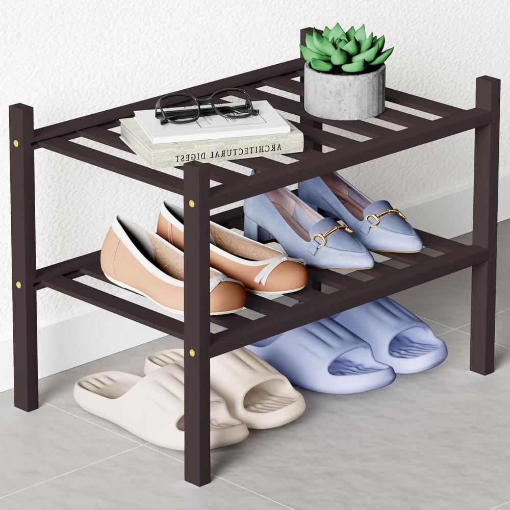 Smiry Bamboo Shoe Rack for Closet, 5 Tier Wooden Stackable Shoe Organizer, Free Standing Shoes Storage Shelf for Entryway, Front Door Entrance, Brown(Brown)