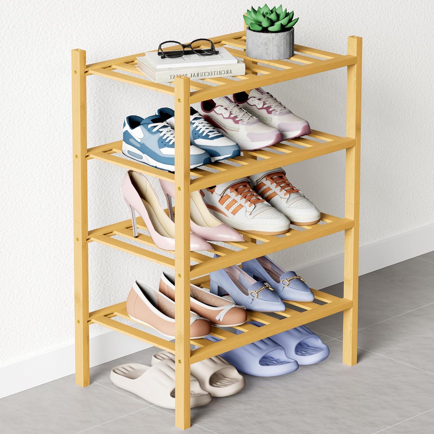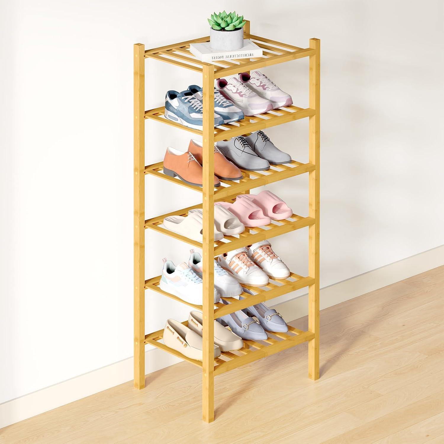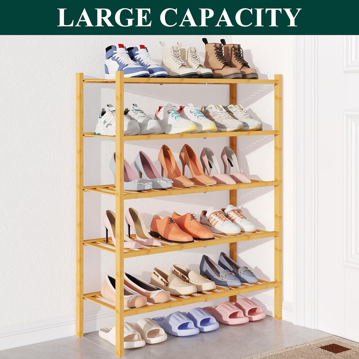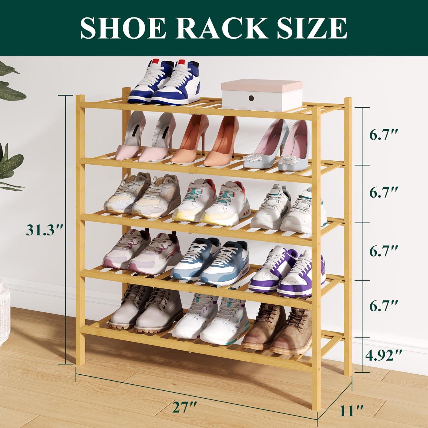 Smiry Bamboo Shoe Rack for Closet, 5 Tier Wooden Stackable Shoe Organizer, Free Standing Shoes Storage Shelf for Entryway, Front Door Entrance, Brown(Natural)