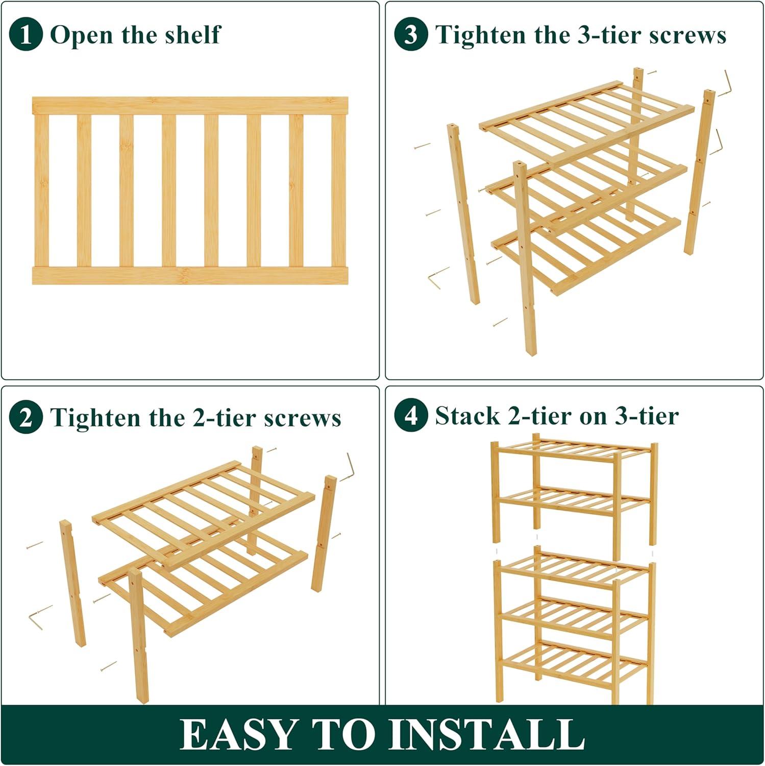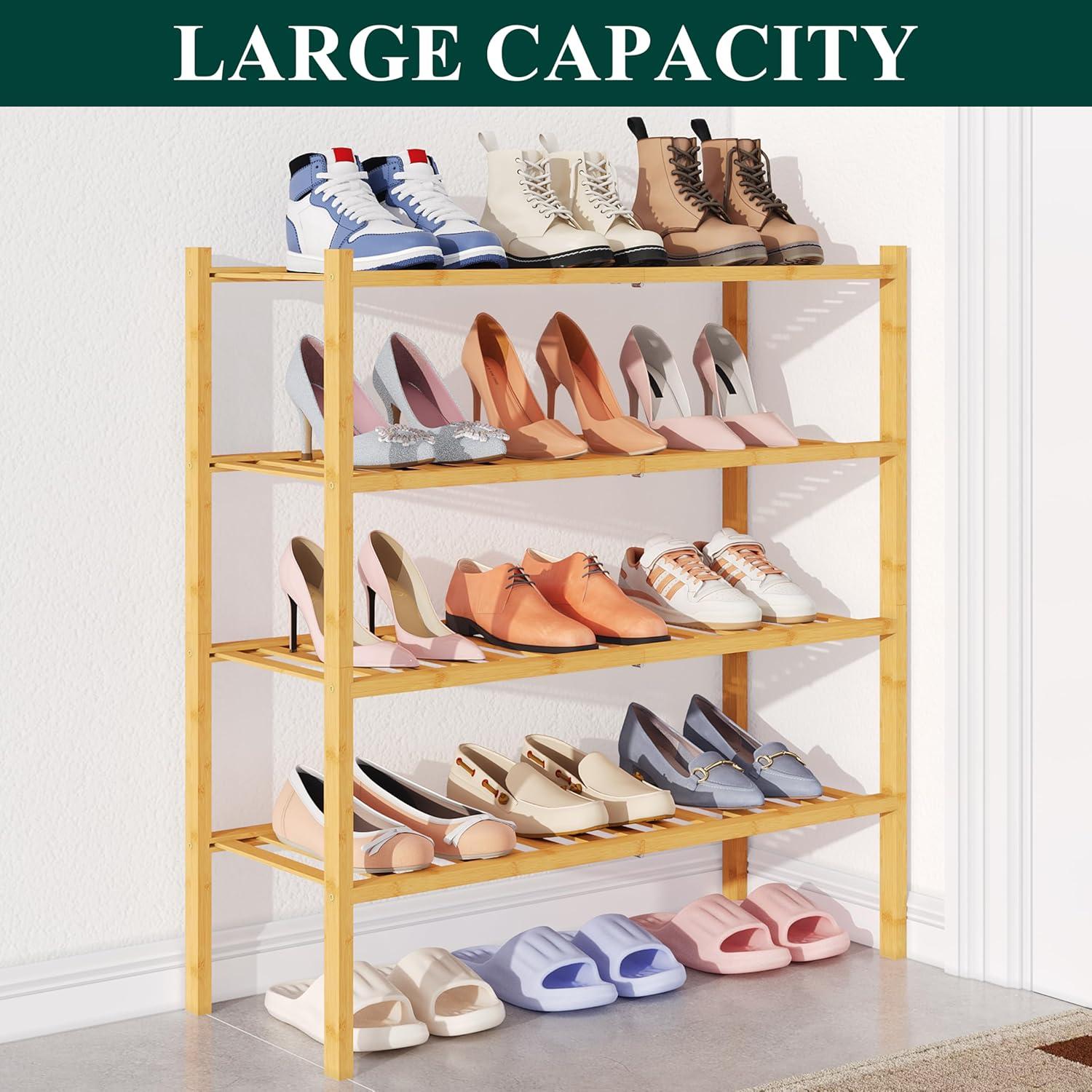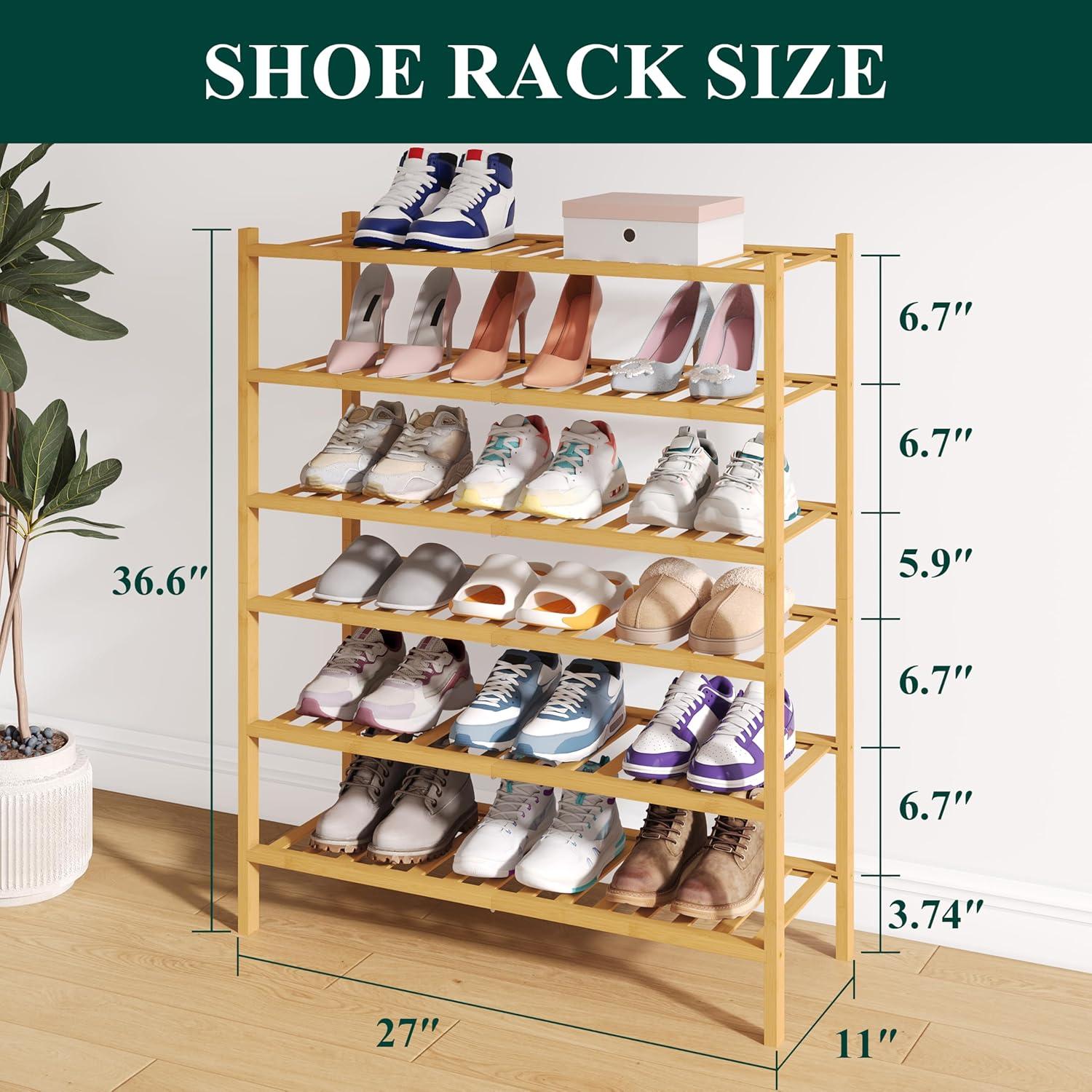 Sturdy Construction: Built with reinforced bamboo, our shoe organizer features a thick, durable frame, sturdy shelves, and solid legs for superior stability