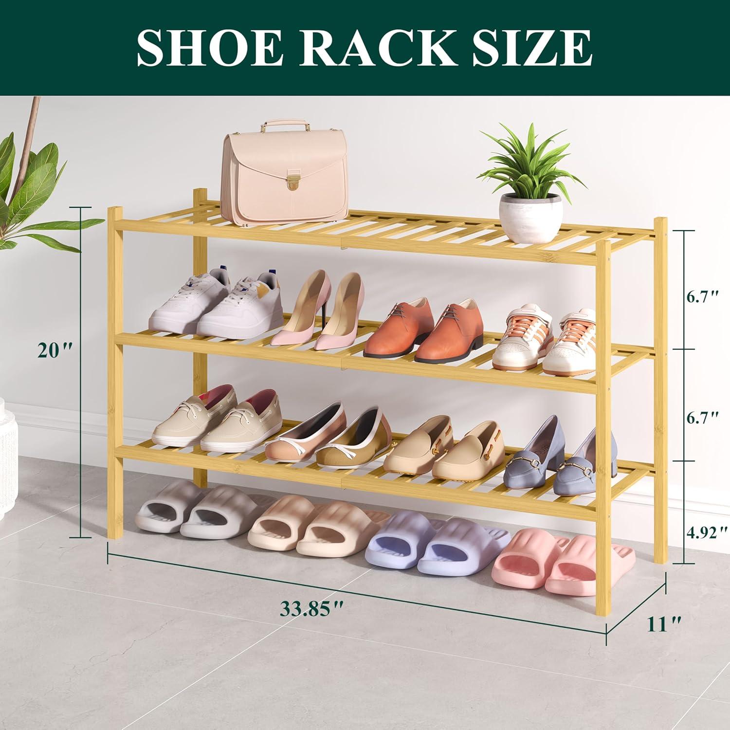 Premium Natural Bamboo: Crafted from high quality bamboo, renowned for its strength and elegant grain, this entryway shoe rack offers enduring durability and a timeless design that fits effortlessly into any decor