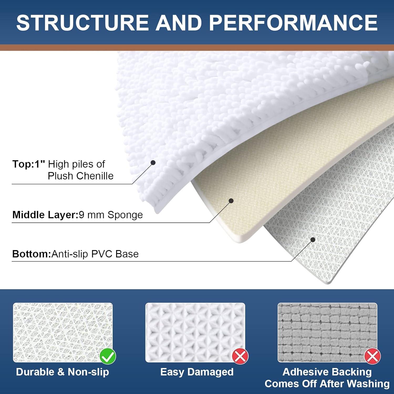 【ULTRA SOFT & COMFORTABLE】: Smiry U-shaped mats are made of fluffy plush chenille fibers that cloud-like feeling of softness, the foam inside relieves pressure on your feet and avoids feeling cold from the floor.