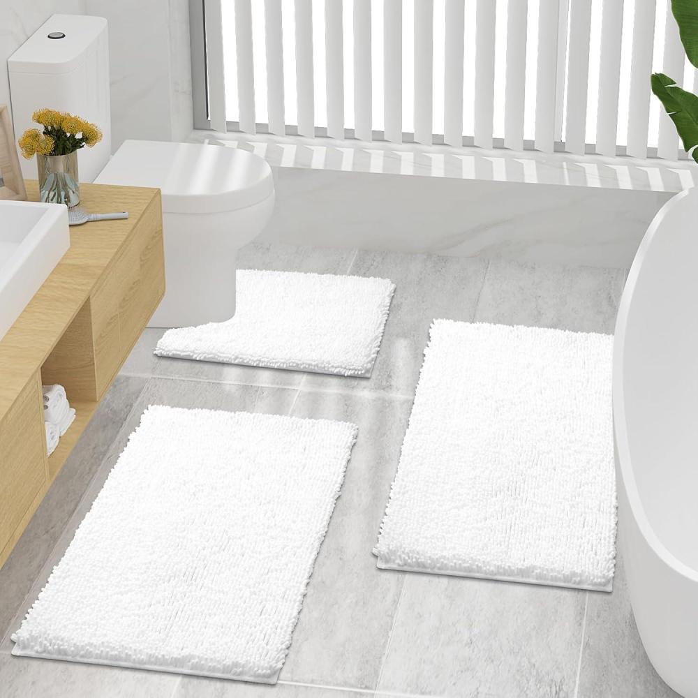 | Style | smiry Bathroom Mats and U-Shaped Toilet Rug Set White |