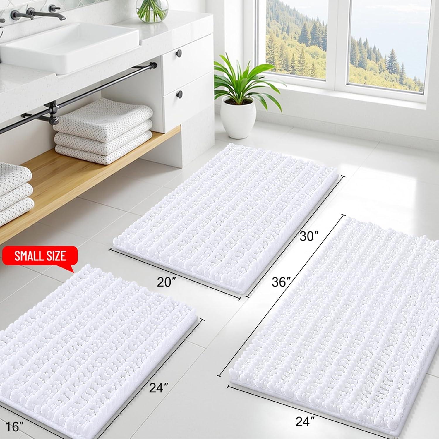 Smiry Bathroom Rugs 24x16 and Toilet Lid Cover 17.5x15, Soft and Absorbent Bath Mat, Machine Washable, Non-Slip Plush Carpet Runner for Tub, Shower, and Floor, Home Decor,White