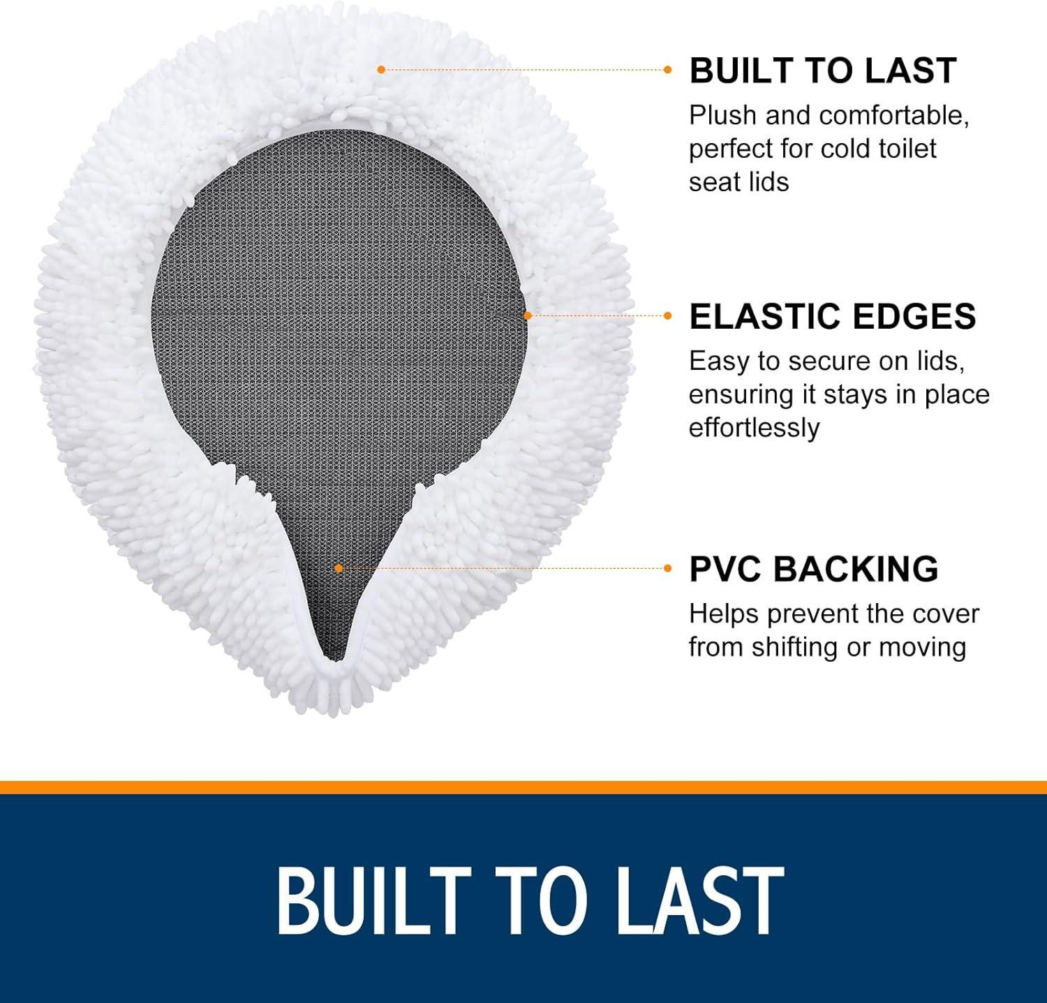[SOFT AND COMFORTABLE] Plush chenille topside is ultra soft and comfortable to sit on; premium fabric adds an extra layer of comfort while helping to protect your toilet lid from scratches and damage.