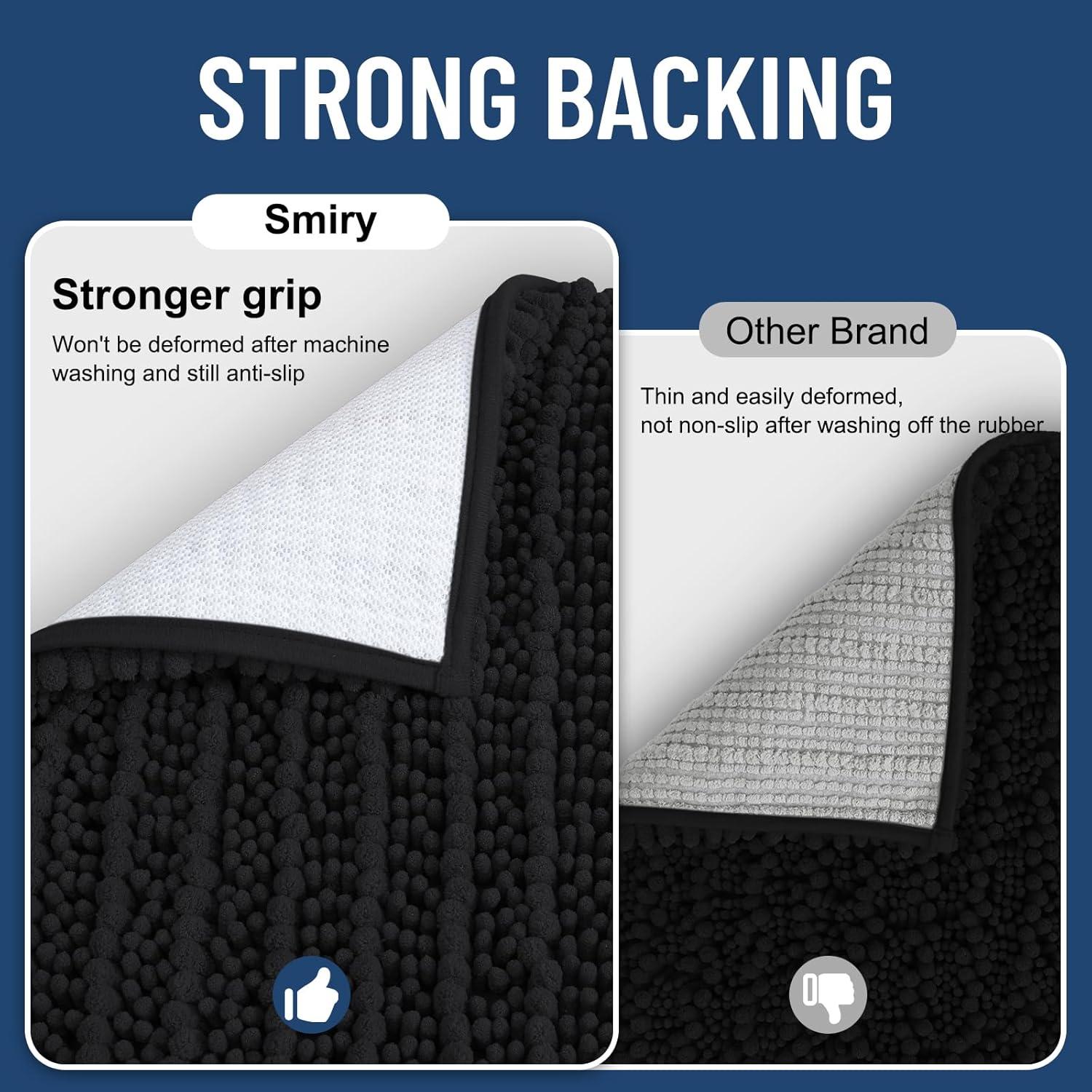 imageSmiry Bathroom Rugs 24x1630X20 Extra Soft Absorbent Shaggy Chenille Bath Mats Machine Washable Dry Quickly NonSlip Plush for Tub Shower and Floor Home Decor Accessories Black