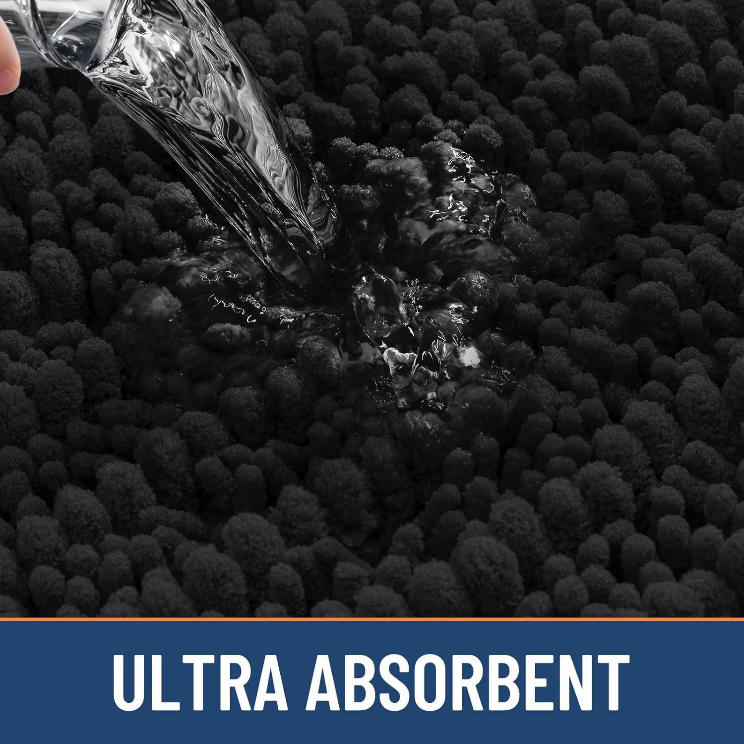 Smiry Bathroom Rugs 24×16+30X20, Extra Soft Absorbent Shaggy Chenille Bath Mats, Machine Washable, Dry Quickly, Non-Slip Plush for Tub, Shower, and Floor, Home Decor Accessories, Black