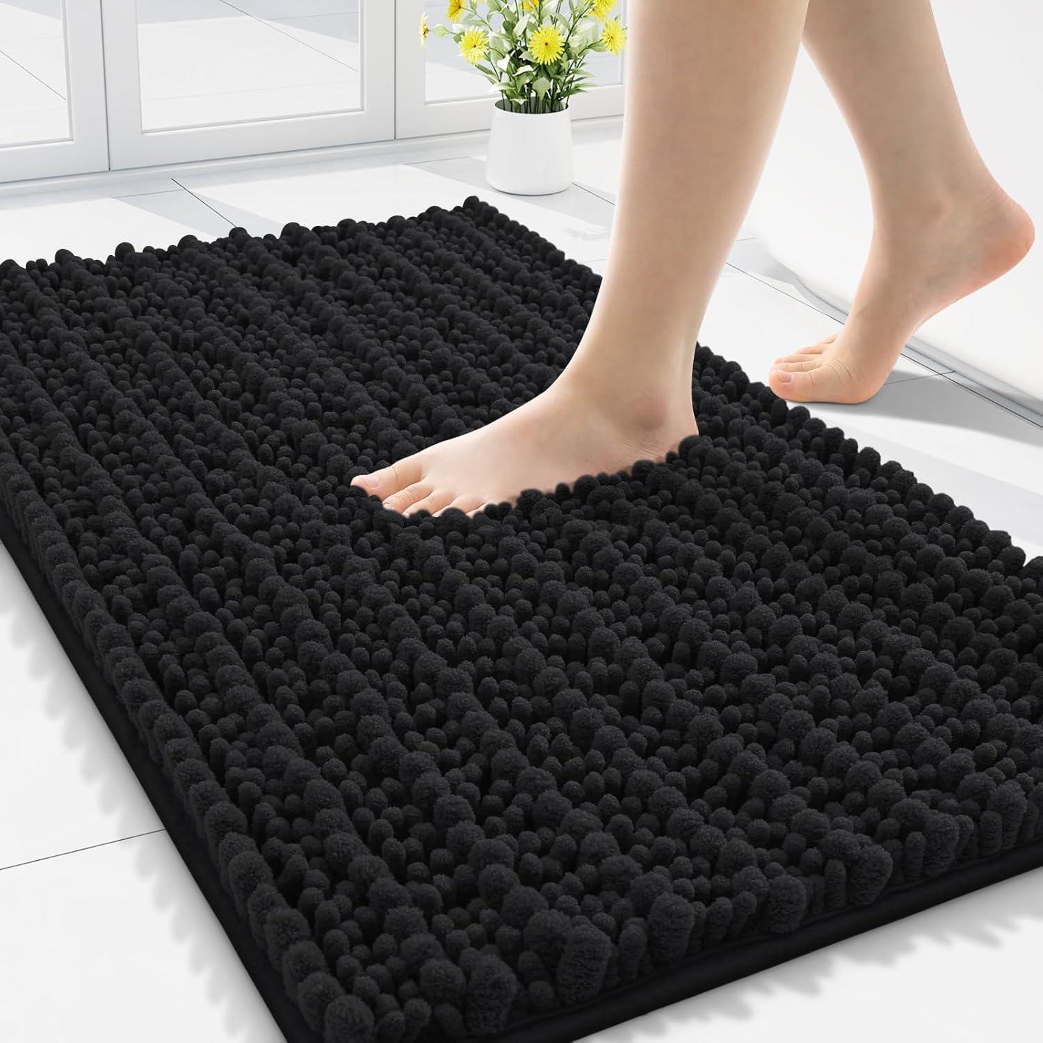 Smiry Bathroom Rugs 24x16+30X20, Extra Soft Absorbent Shaggy Chenille Bath Mats, Machine Washable, Dry Quickly, Non-Slip Plush for Tub, Shower, and Floor, Home Decor Accessories, Black