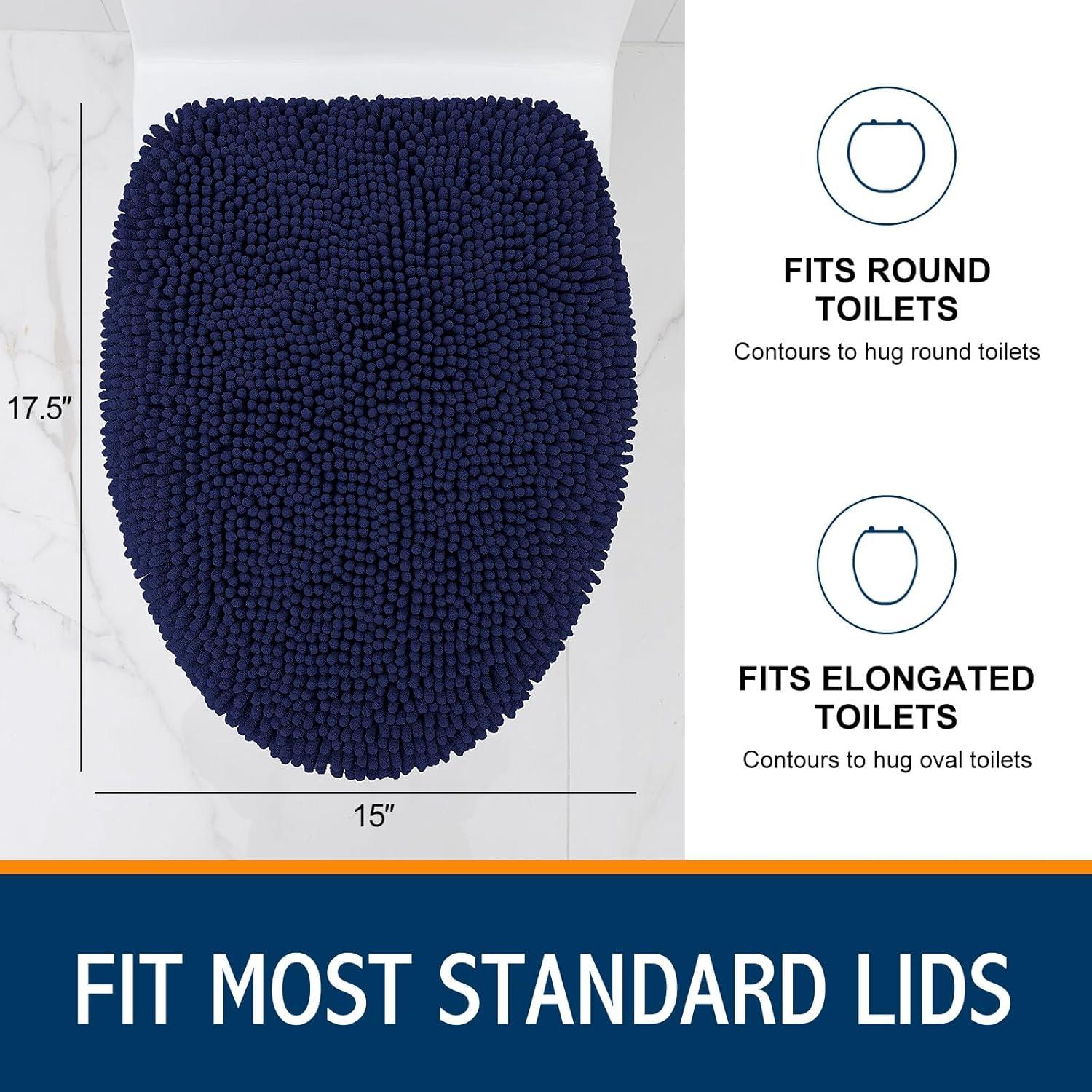 [FITS MOST TOILET LIDS] Our generously sized cover, measuring 17.5 by 15 inches, is designed to fit the majority of round and elongated toilet lids. The robust elastic edges enable the cover to adapt to your toilet lid's shape for a secure fit, though elongated lids may require additional effort during installation.