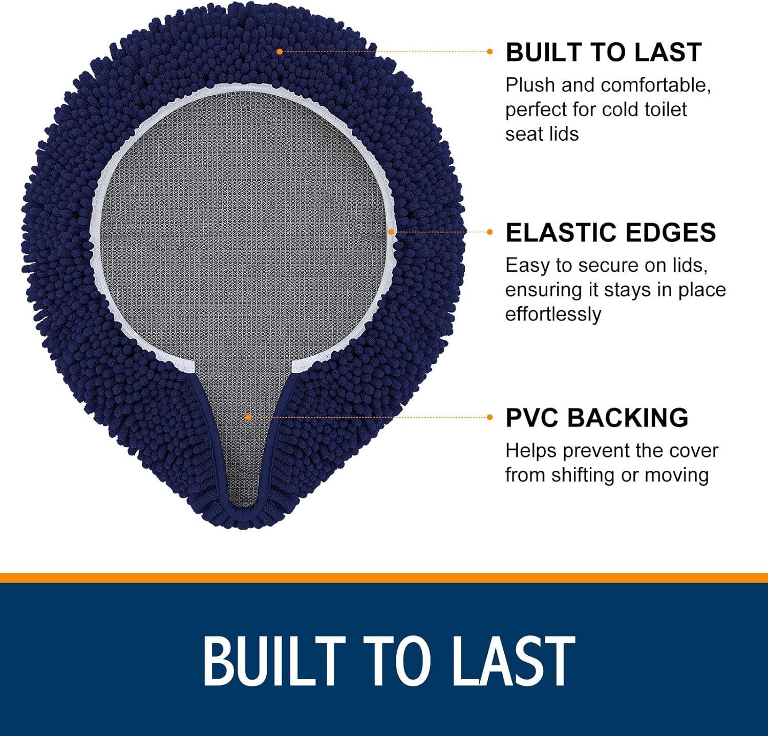 [SOFT AND COMFORTABLE] Plush chenille topside is ultra soft and comfortable to sit on; premium fabric adds an extra layer of comfort while helping to protect your toilet lid from scratches and damage.
