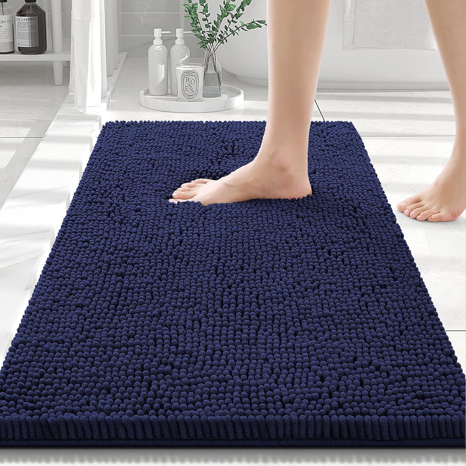 Smiry Bathroom Rugs 30×20 and Toilet Lid Cover 17.5×15, Soft and Absorbent Bath Mat, Machine Washable, Non-Slip Plush Carpet Runner for Tub, Shower, and Floor, Home Decor,Navy Blue