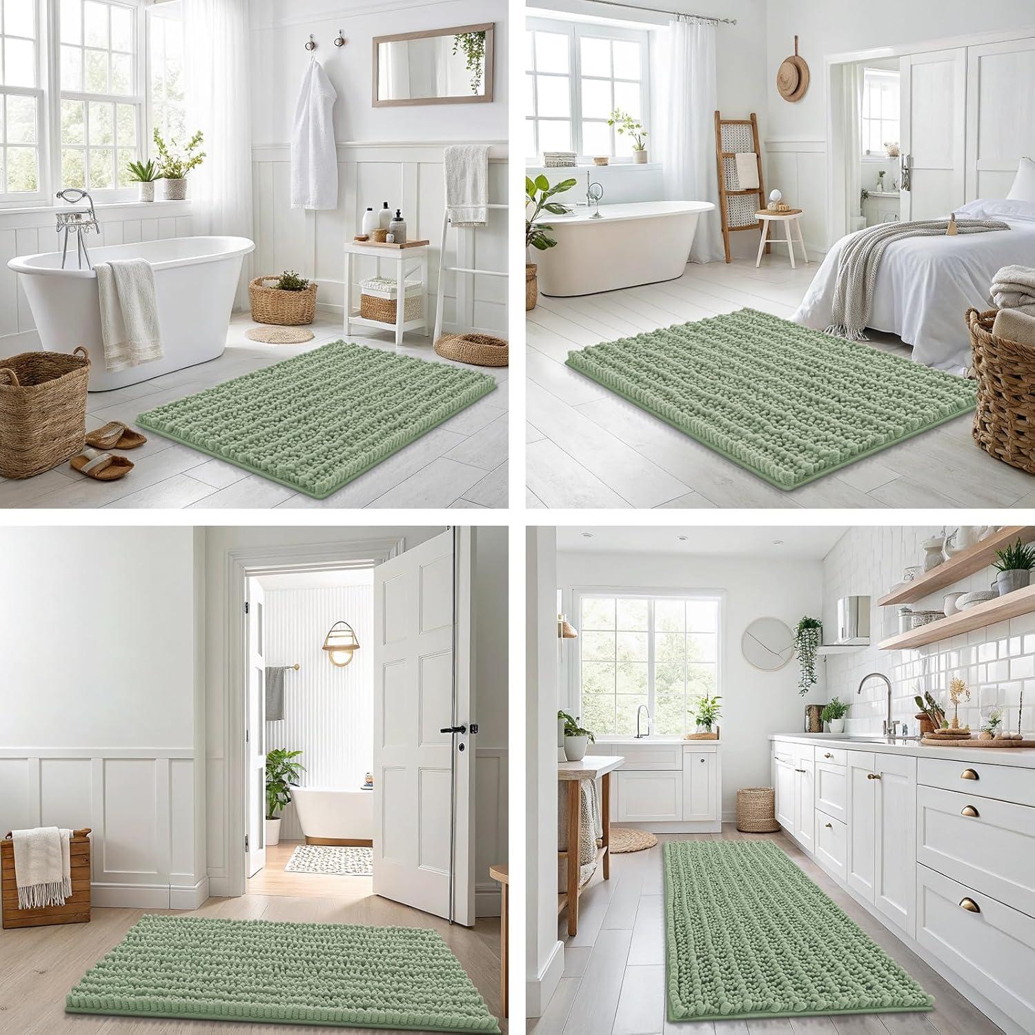 Smiry Bathroom Rugs 30×20 and Toilet Lid Cover 17.5×15, Soft and Absorbent Bath Mat, Machine Washable, Non-Slip Plush Carpet Runner for Tub, Shower, and Floor, Home Decor,Sage Green