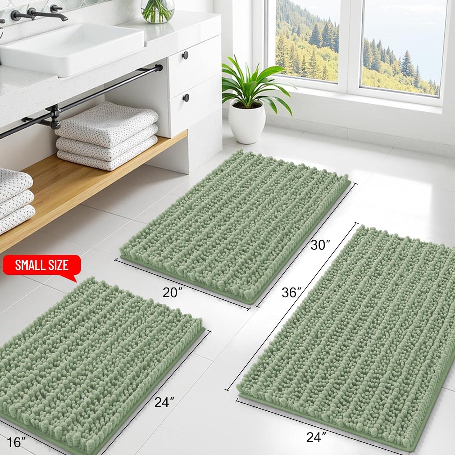 Smiry Bathroom Rugs Sets 2 Piece(30×20 Plus 24×20) and Toilet Lid Cover 17.5×15, Soft and Absorbent Bath Mat, Machine Washable, Non-Slip Plush Carpet Runner for Tub, Shower, and Home Decor,Sage Green