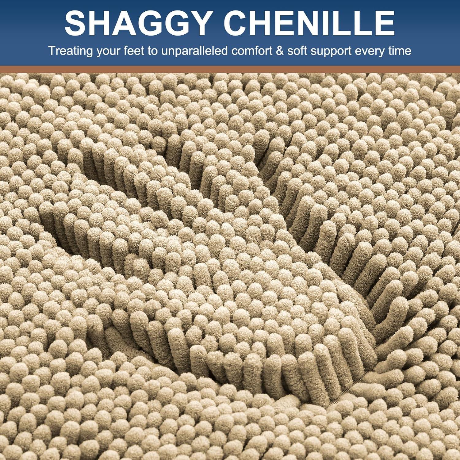 Smiry Bathroom Rugs 30X20+30X20, Extra Soft Absorbent Shaggy Chenille Bath Mats, Machine Washable, Dry Quickly, Non-Slip Plush for Tub, Shower, and Floor, Home Decor Accessories, Beige