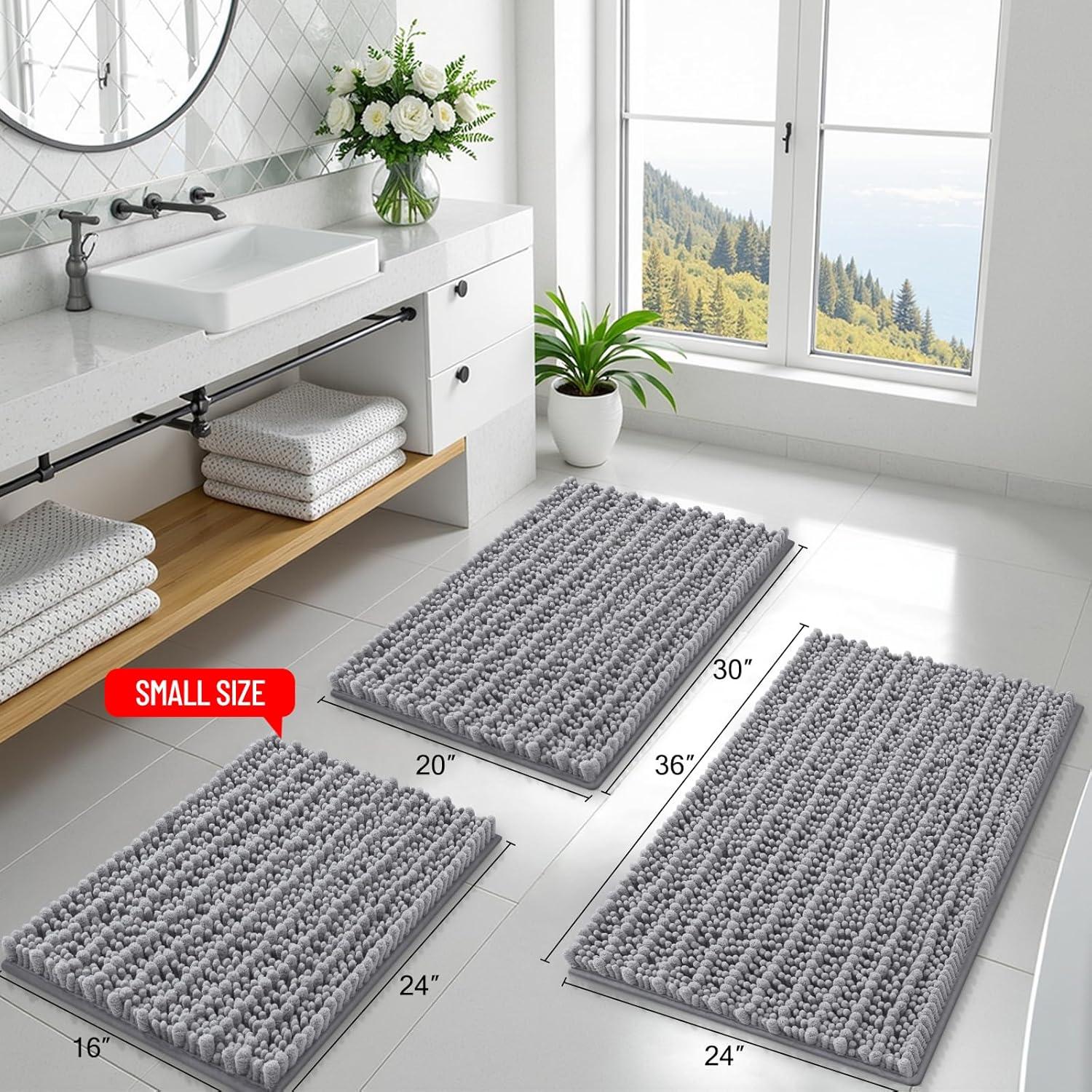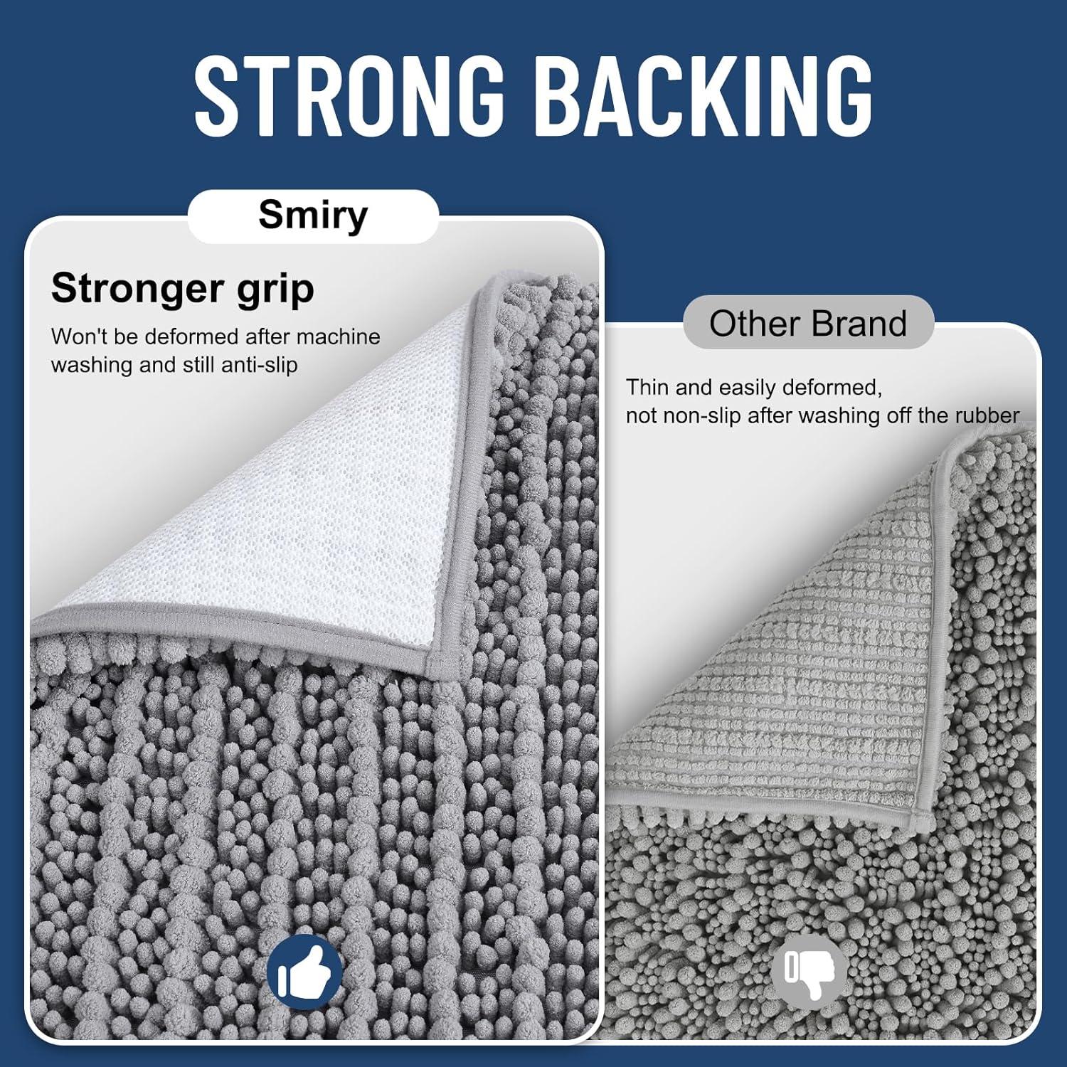 [Excellent Absorbent] Crafted with thousands of ultra-absorbent microfiber shags, Smiry Bathroom mats swiftly soak up moisture, preventing wet floors and ensuring a clean, dry environment. With deep pile design, these mats dry rapidly, ready for your next use.