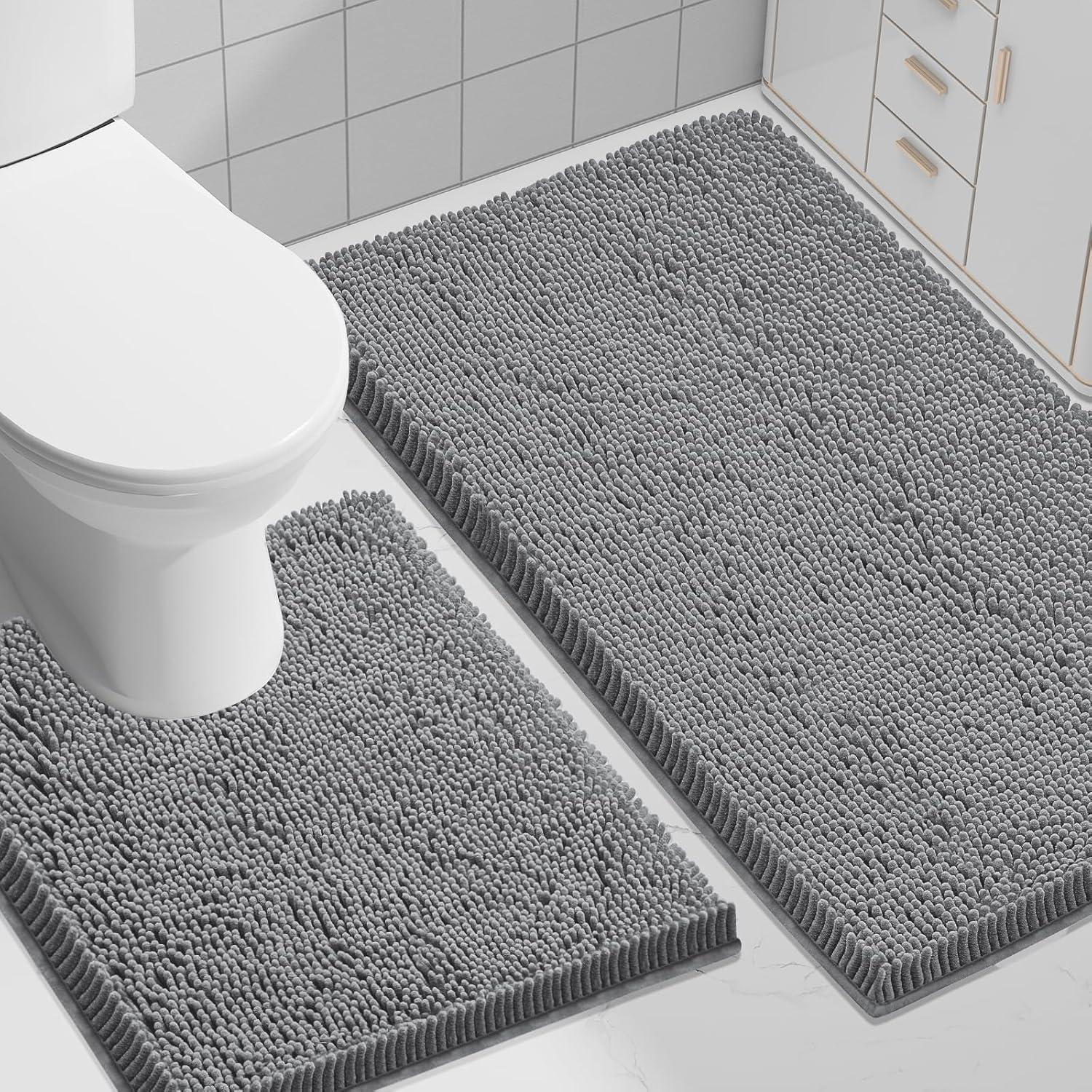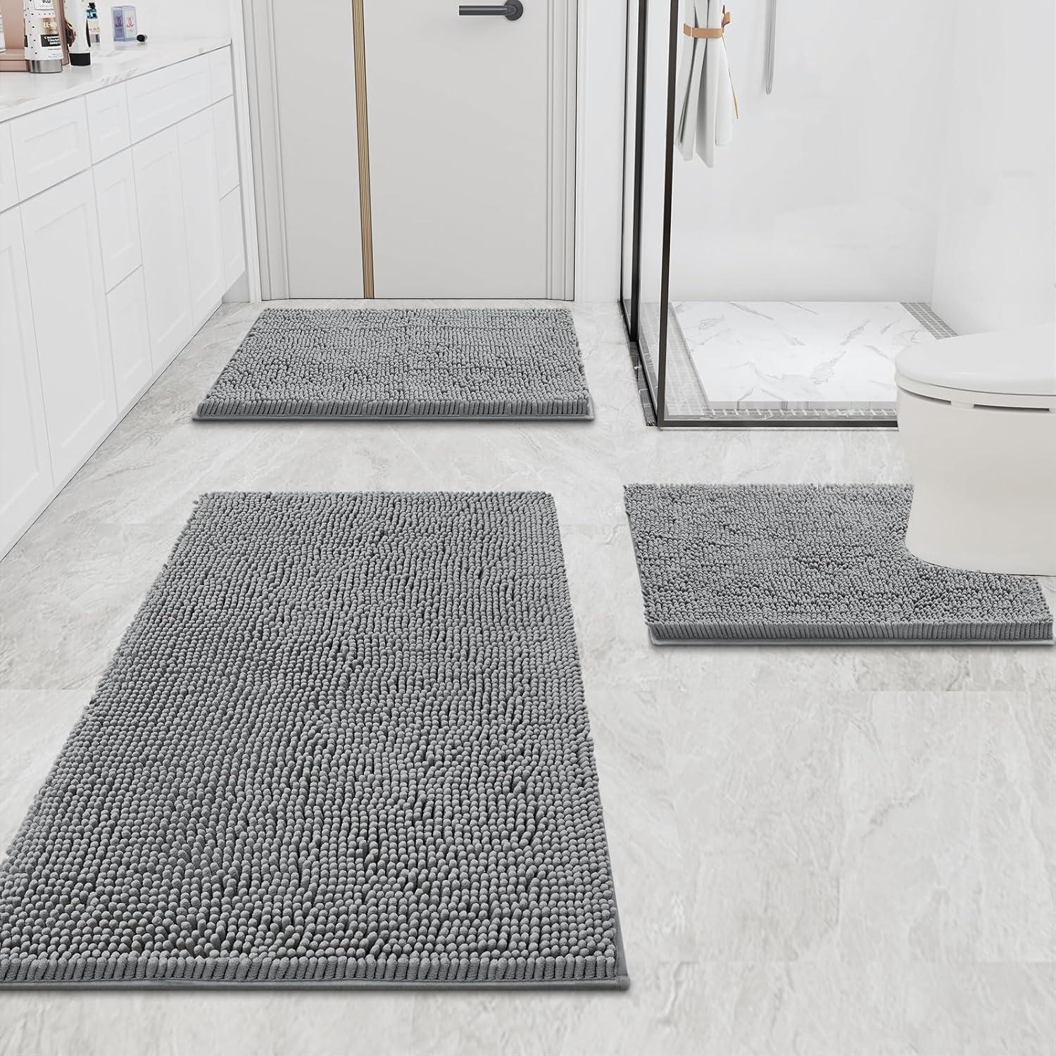 Smiry Bathroom Rugs 30×20+59X24, Extra Soft Absorbent Shaggy Chenille Bath Mats, Machine Washable, Dry Quickly, Non-Slip Plush for Tub, Shower, and Floor, Home Decor Accessories, Grey