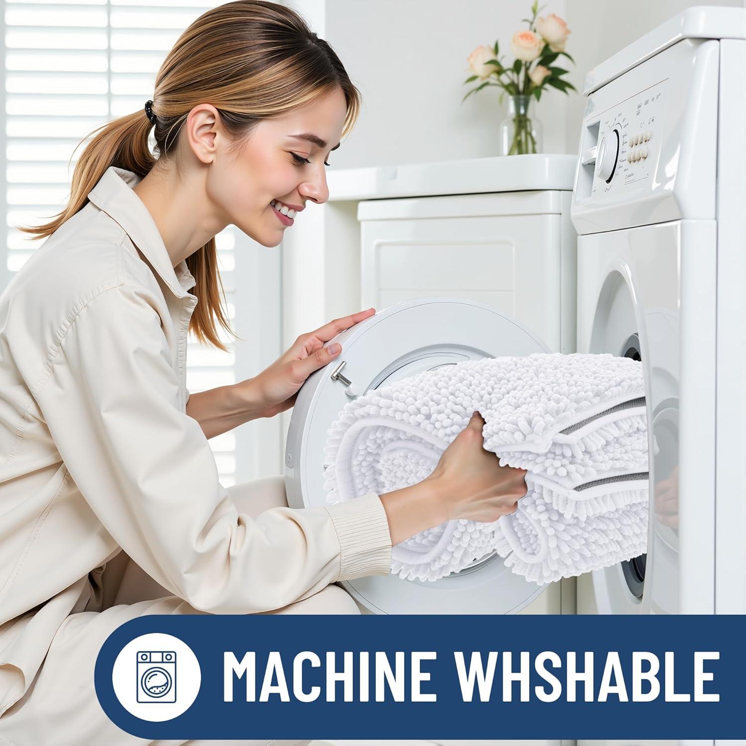 [Easy to Clean & Care] Smiry bathroom rugs are effortlessly maintainable. Toss them in your washing machine and tumble dry on low for a hassle-free cleaning experience. The extra-soft microfiber material remains smooth, even after multiple washes.