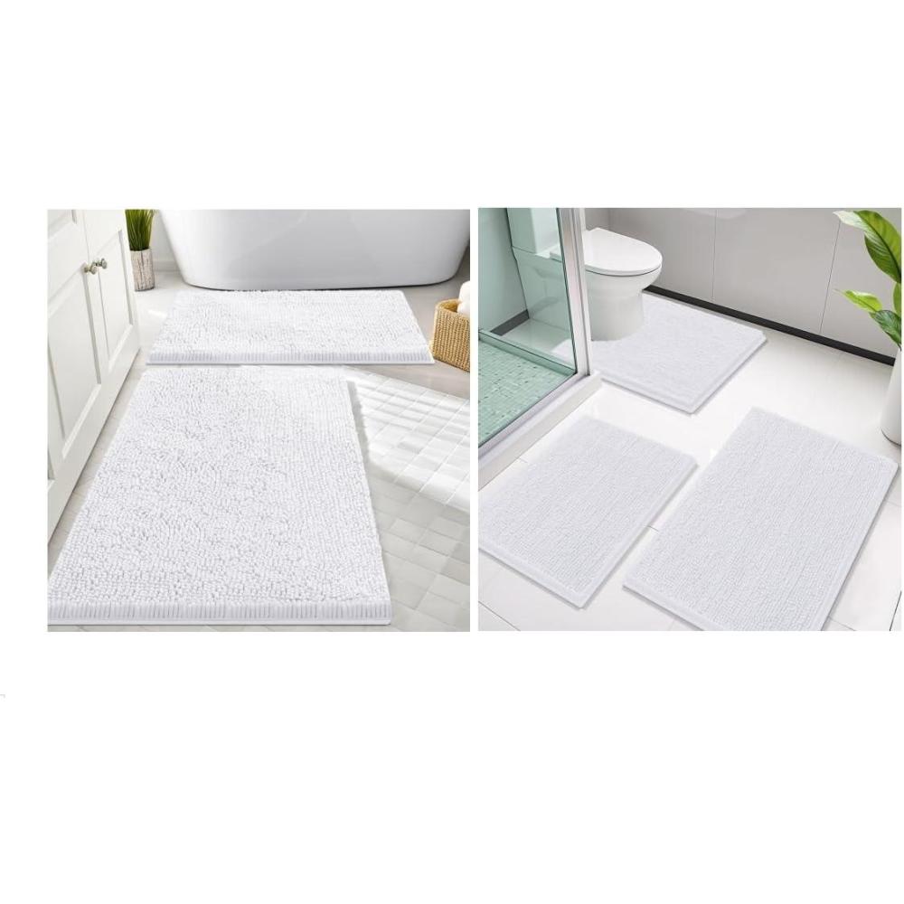 [Soft & Comfortable] This bathroom rug set of 3 are made of well quality, luxurious chenille material. Step onto the plush softness of Smiry luxury bath rugs, treating your feet to unparalleled comfort & soft support every time you exit the shower or bathtub.