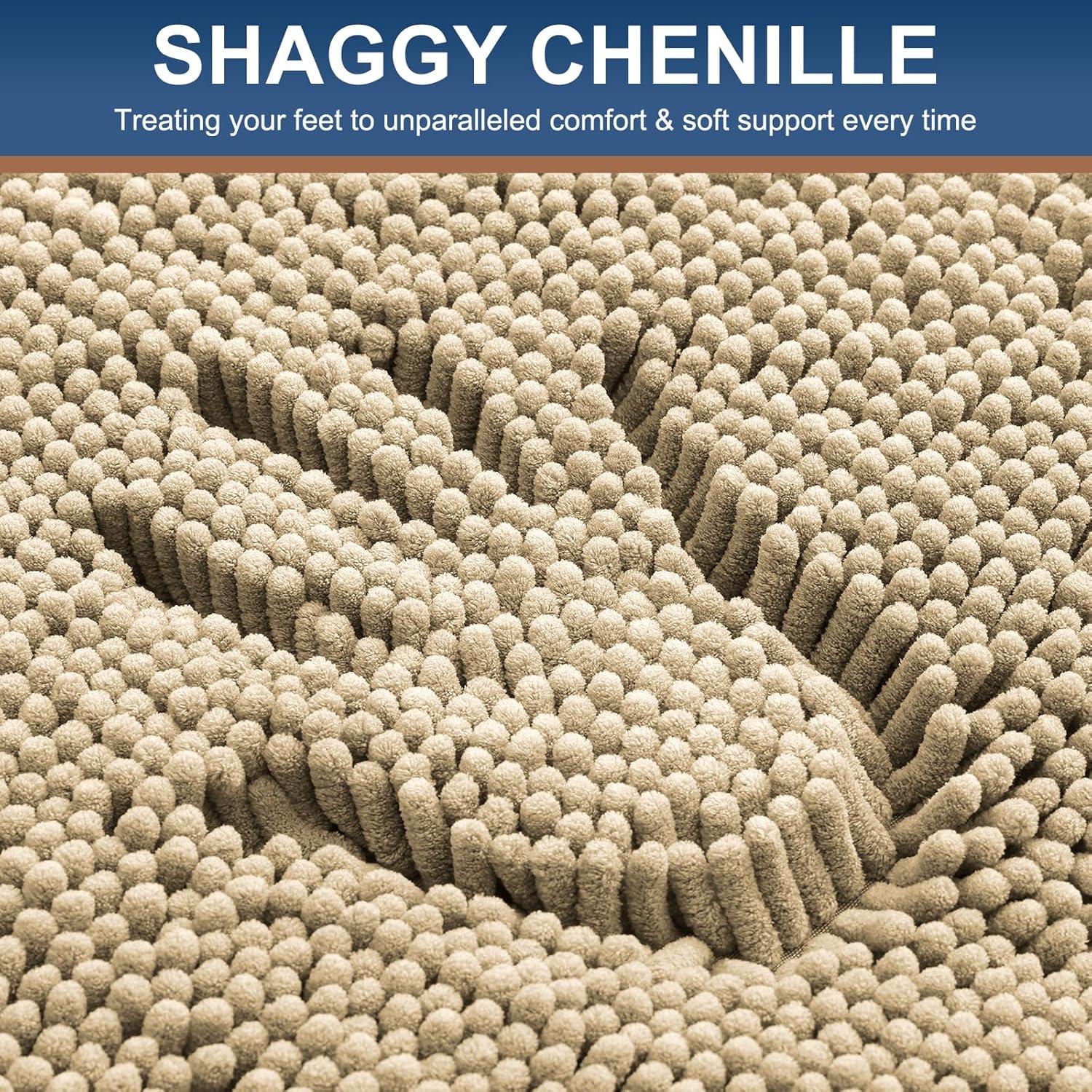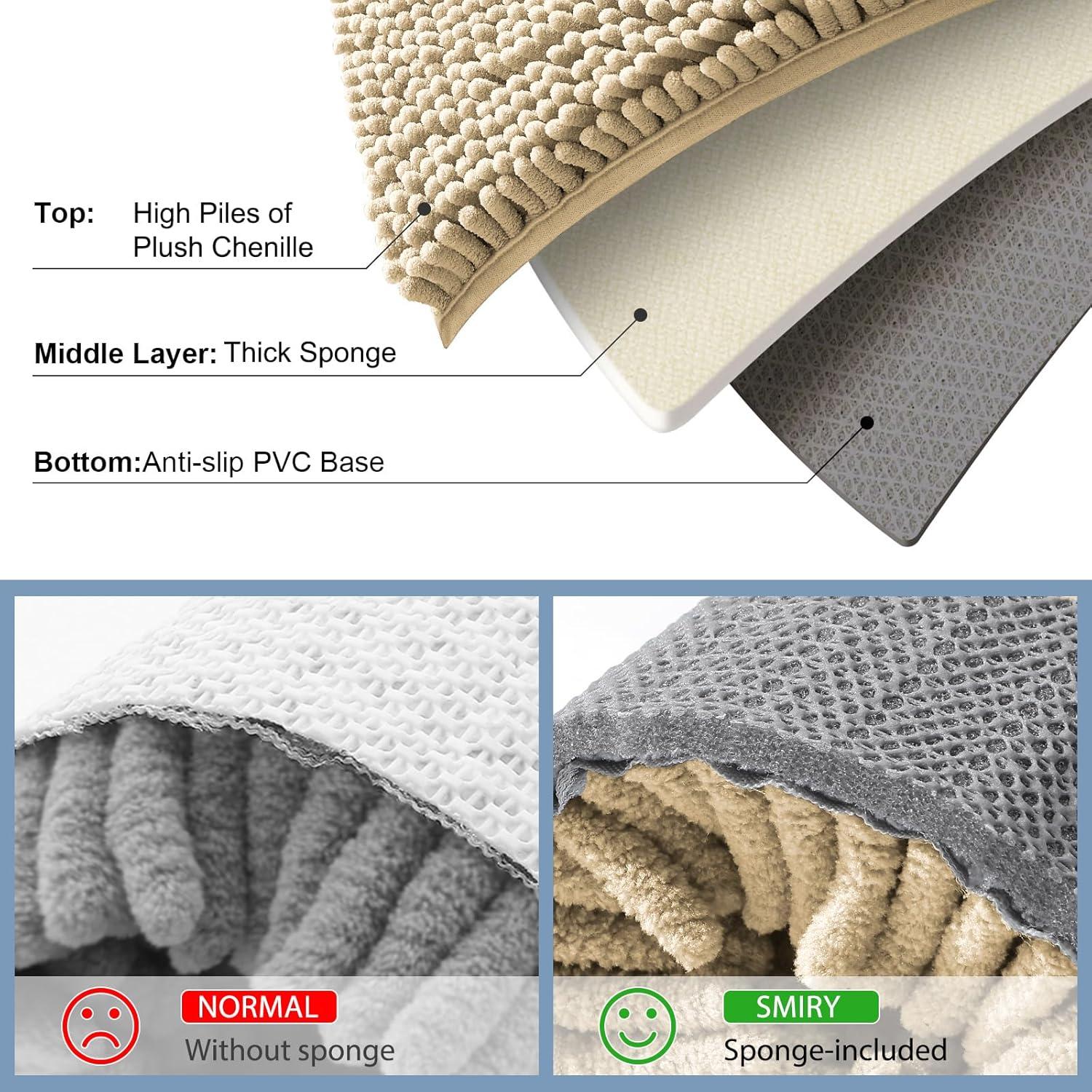 Smiry chenille bathroom rugs pamper your feet with soft,comfortable chenille material; the thick fleece helps to soothe your feet and keep your toes warm away from the cold floor below.Features:Extra soft and comfortable. Step onto the plush softness of Smiry luxury bath rugs, treating your feet to unparalleled comfort & soft support every time you exit the shower or bathtub. [Excellent Absorbent] Crafted with thousands of ultra-absorbent microfiber shags, Smiry Bathroom rug swiftly soak up moisture, avoiding wet floors and ensuring a clean, dry environment. With deep pile design, these mats dry rapidly, ready for your next use. [Non-Slip Backing] Our bath rugs feature a non-slip backing made from good quality mesh PVC, providing a secure grip that avoid shifting and skidding. Important: Place on CLEAN DRY FLAT FLOOR ONLY to avoid slipping. Keep the rug's bottom dry at all times. [Easy to Clean & Care] Smiry bathroom rugs are effortlessly maintainable. Toss them in your washing machine and tumble dry on low for a hassle-free cleaning experience. The extra-soft microfiber material remains smooth, even after multiple washes. [Various Colors & Versatile Usage] Elevate your space with a touch of style. Choose from a variety of colors to seamlessly integrate Smiry bath rugs into your bathroom, shower, living room, bedroom, or any desired area. Experience warmth, support, and aesthetic appeal that enriches your surroundings. Choice for sizes: 24 x 16 inch/ 24 x 20 inch/ 30 x 20 inch/ 36 x 24 inch/ 47 x 20 inch. Choice for colors: Grey/ Beige/ Black/ Brown/ White/ Green/ Red/ Blue
