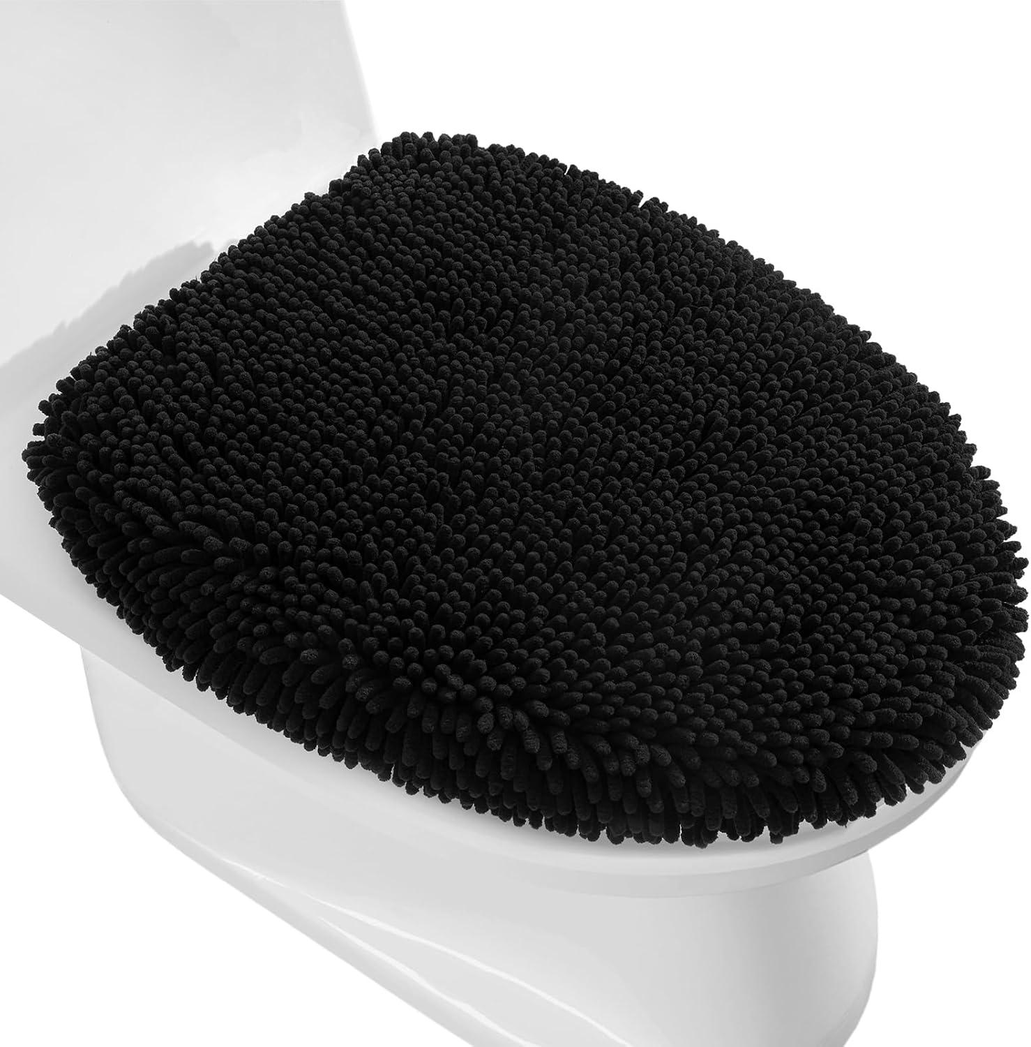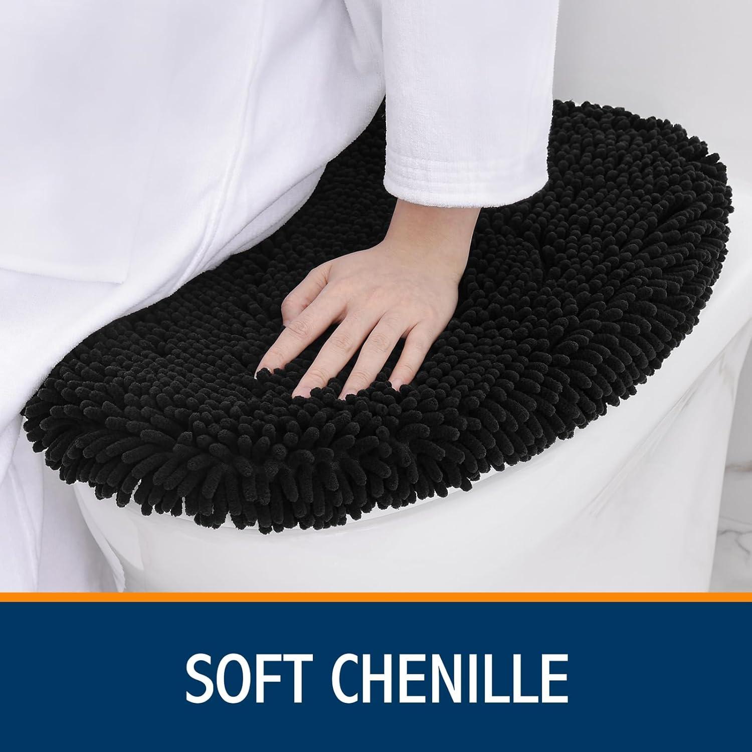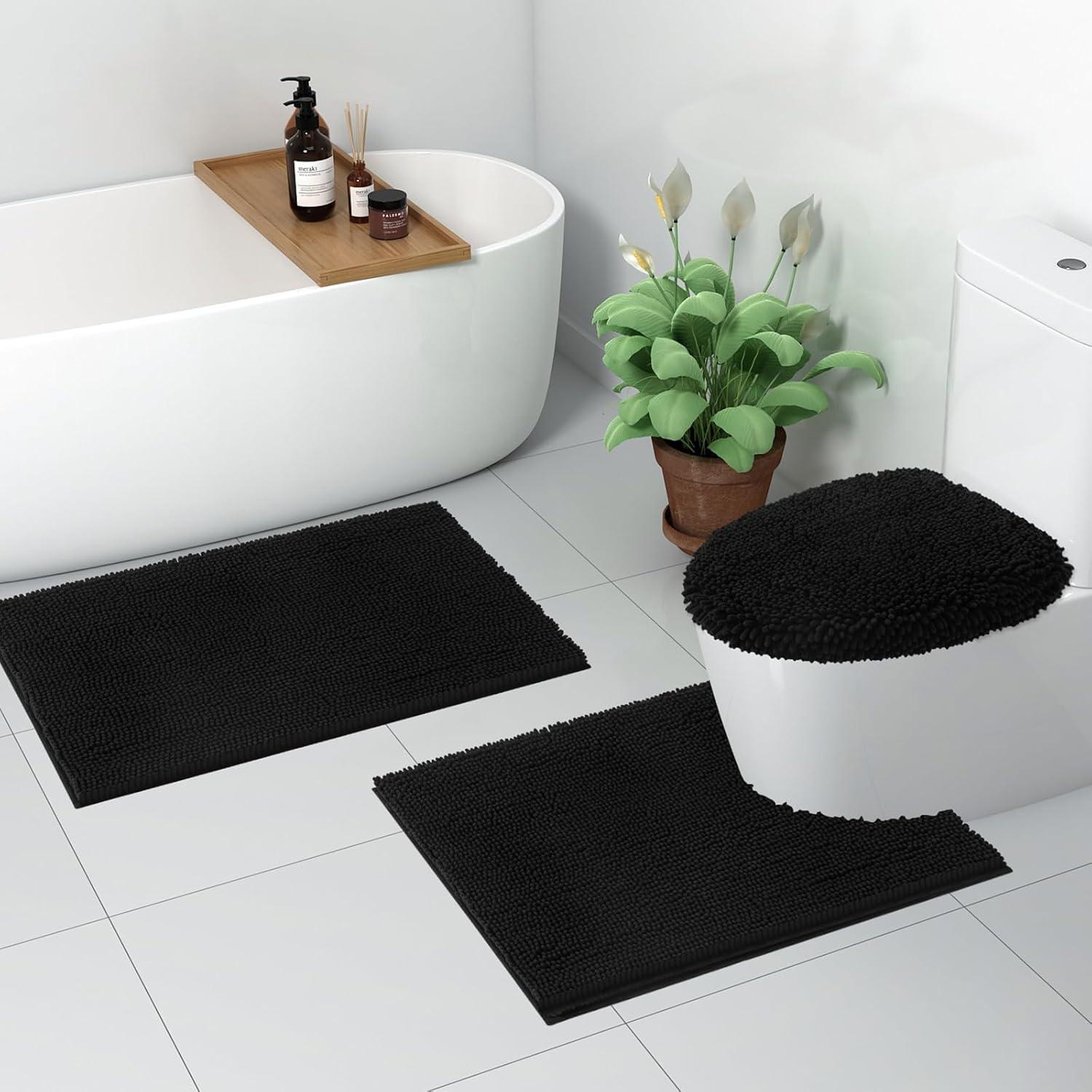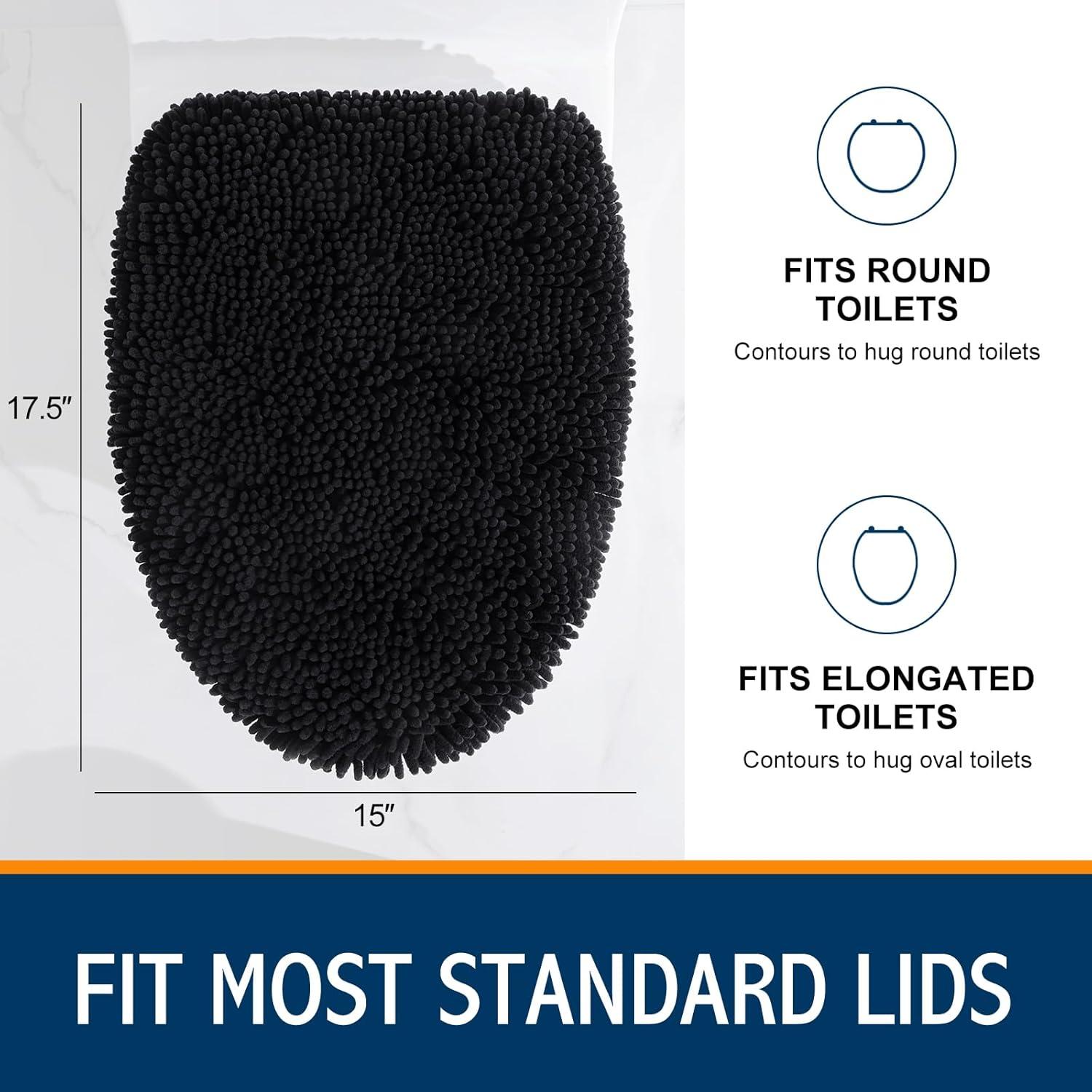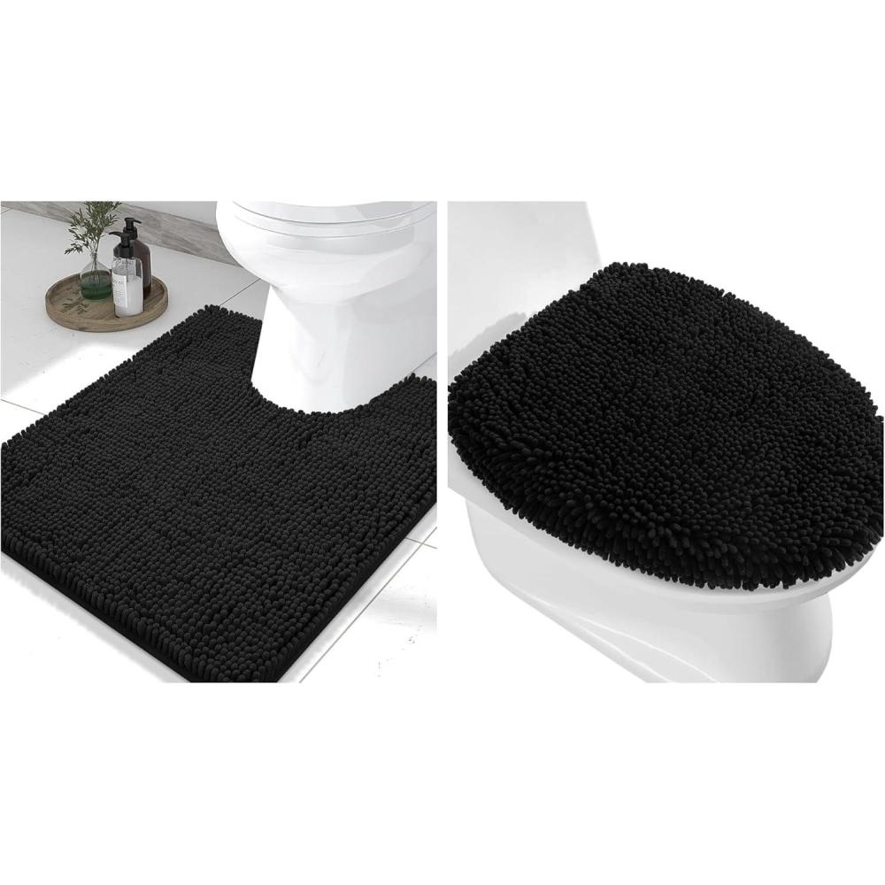 Smiry Bathroom Rugs and Toilet Lid Cover,Machine Wash Dry, Non Slip Absorbent Shaggy Bath Rug for Bath Room, Shower and Tub (U-Shaped 24" x 20"+17.5" x 15", Black)