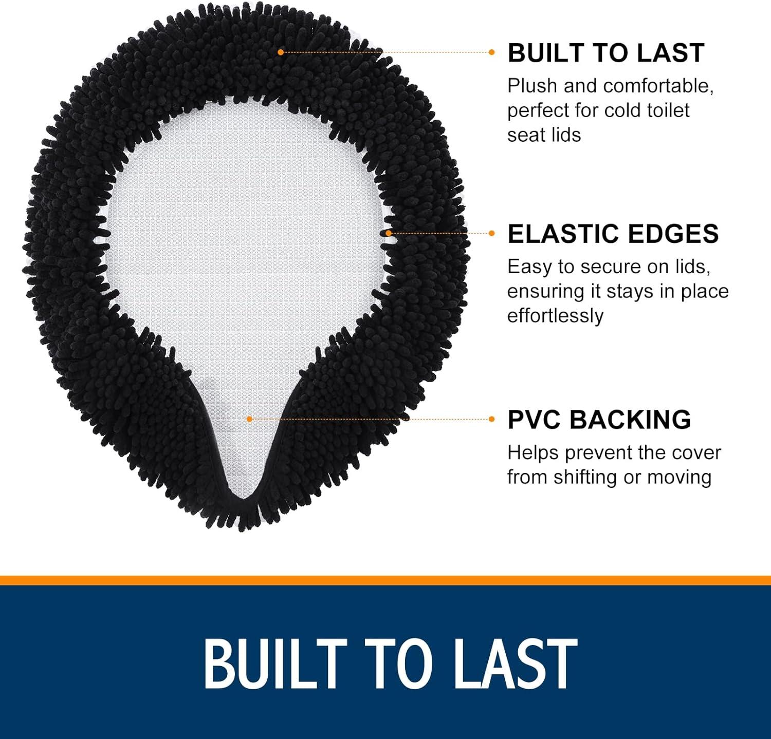 imageSmiry Bathroom Rugs and Toilet Lid CoverMachine Wash Dry Non Slip Absorbent Shaggy Bath Rug for Bath Room Shower and Tub UShaped 24quot x 20quot175quot x 15quot Black