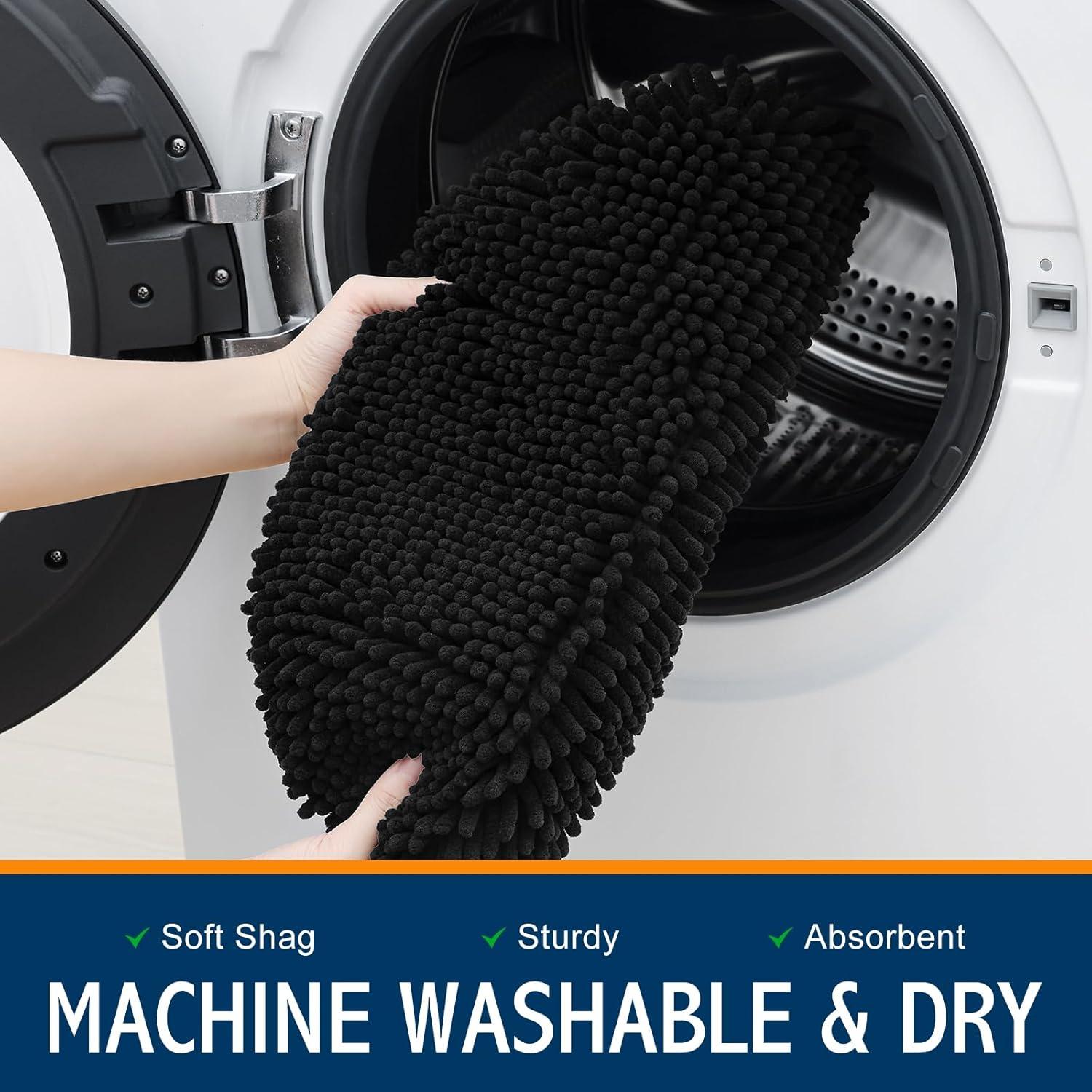 Smiry Bathroom Rugs and Toilet Lid Cover,Machine Wash Dry, Non Slip Absorbent Shaggy Bath Rug for Bath Room, Shower and Tub (U-Shaped 24″ x 20″+17.5″ x 15″, Black)