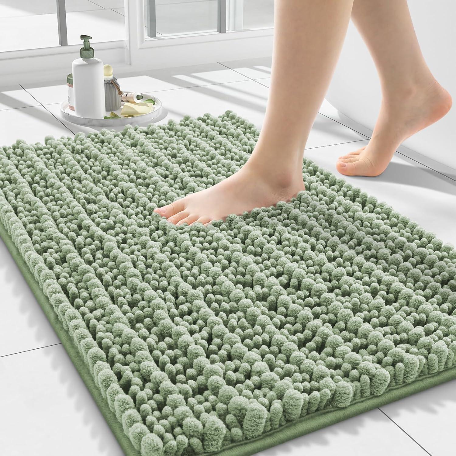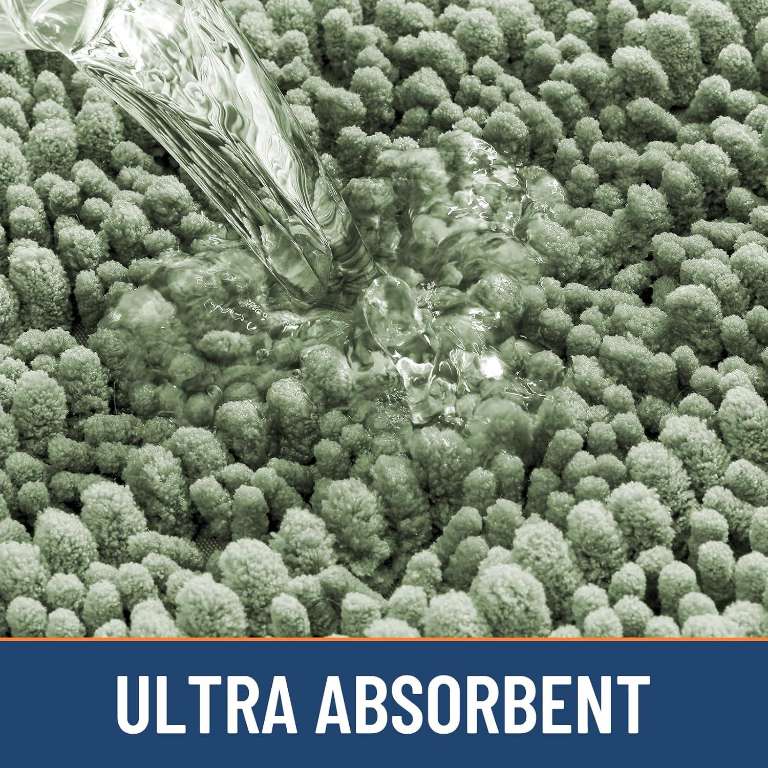 Smiry Bathroom Rugs Mat Set 2 Piece, 24X16+U-Shaped 24×20, Extra Soft Absorbent, Non Slip Rubber Backing Machine Washable Quick Dry Chenille Bath Rug Set for Tub, Shower, and Floor,Sage Green