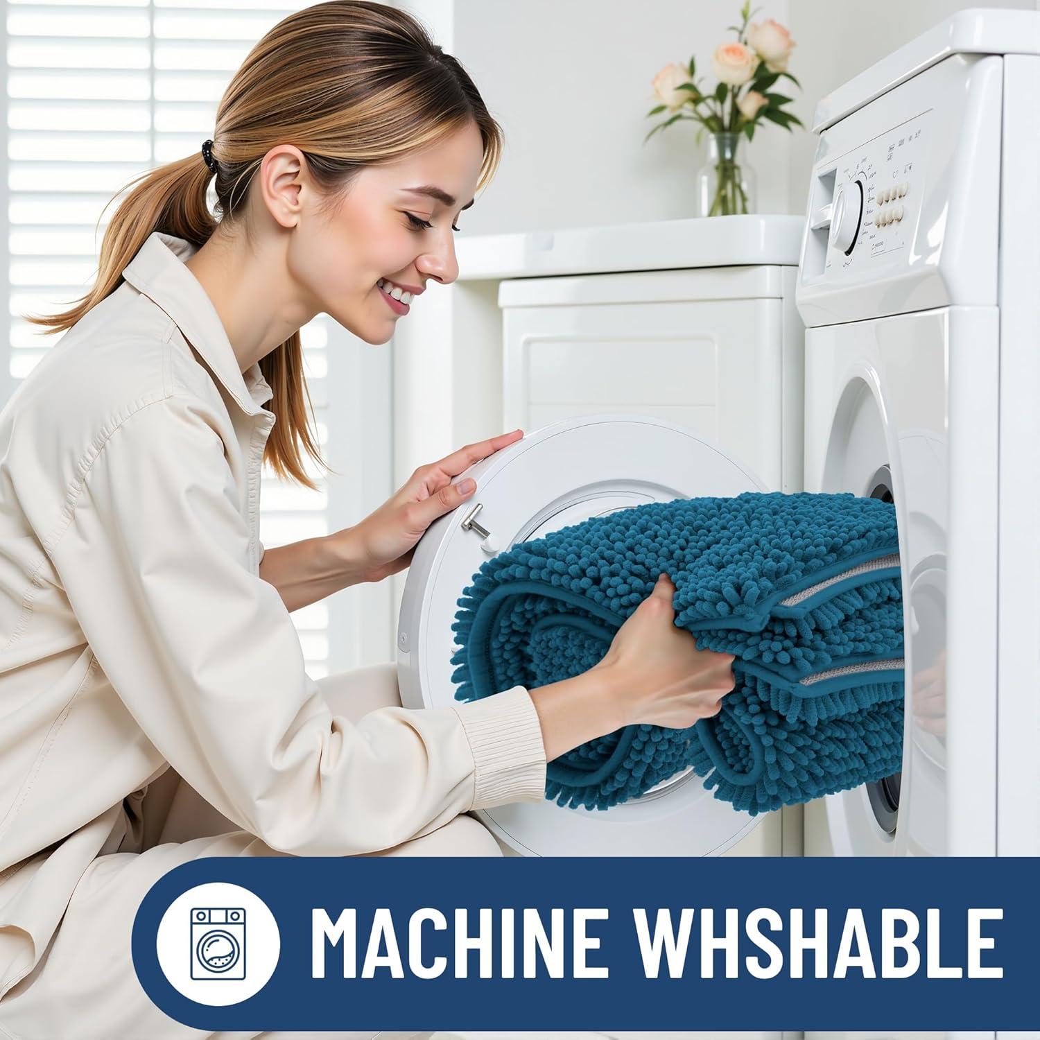 [Easy to Clean & Care] Smiry bathroom rugs are effortlessly maintainable. Toss them in your washing machine and tumble dry on low for a hassle-free cleaning experience. The extra-soft microfiber material remains smooth, even after multiple washes.