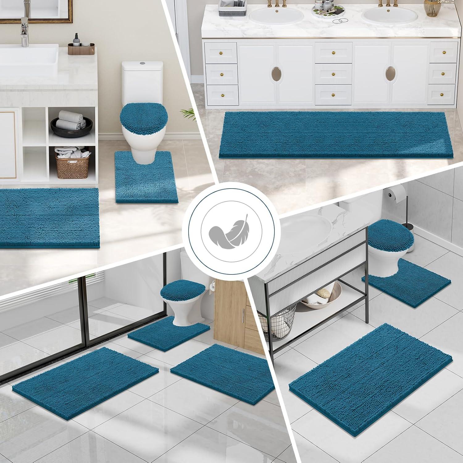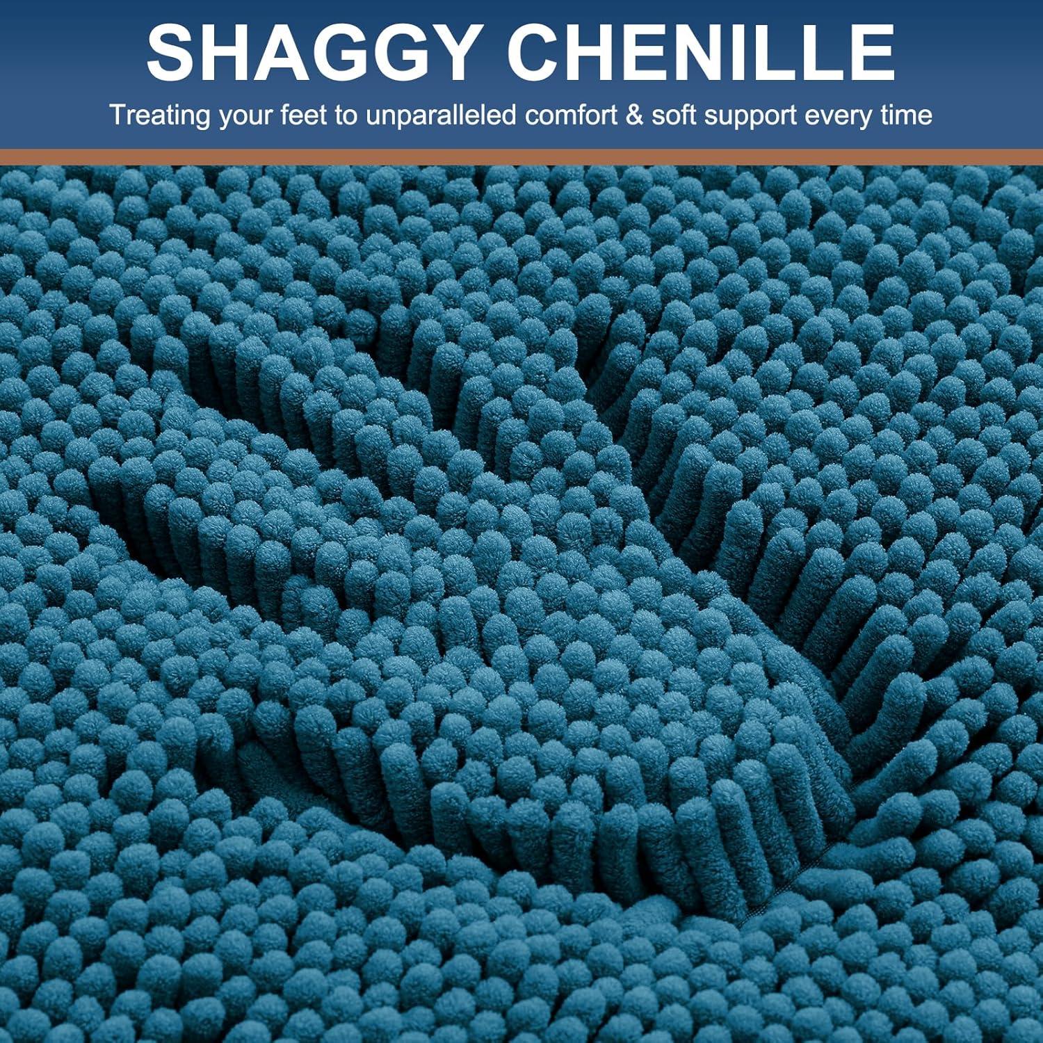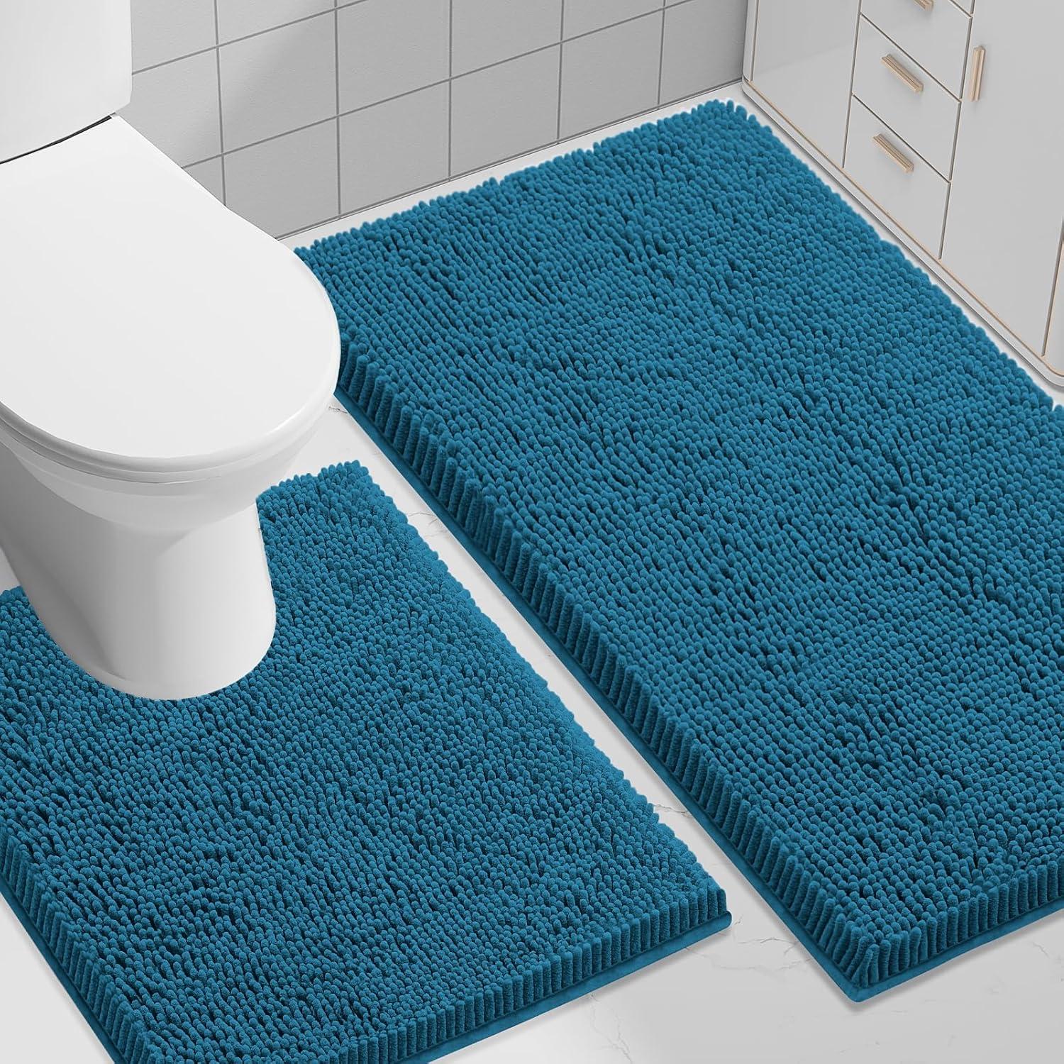 Smiry Bathroom Rugs Set 2 Piece, Soft Absorbent Chenille Bath Mat and U-Shaped Toilet Rug Set, Non Slip Shaggy Bath Carpet for Tub, Shower and Floor (30x20+24x20, Black)(Peacock Blue)