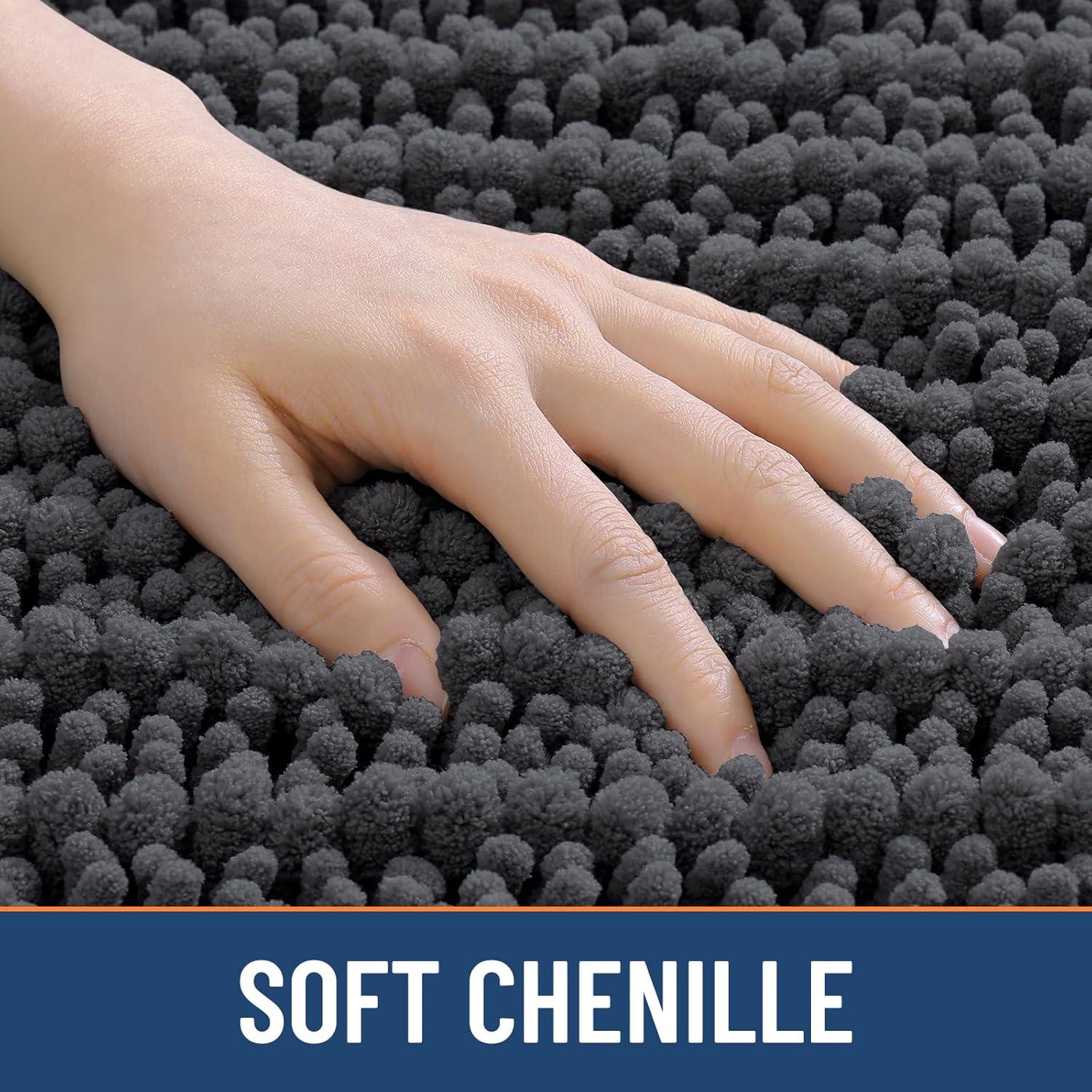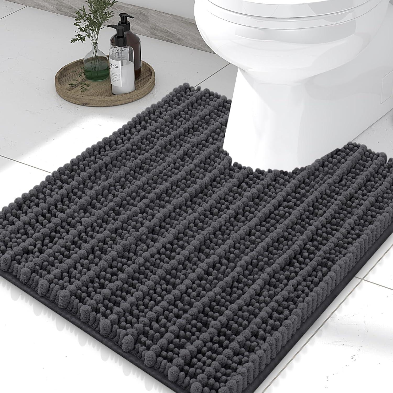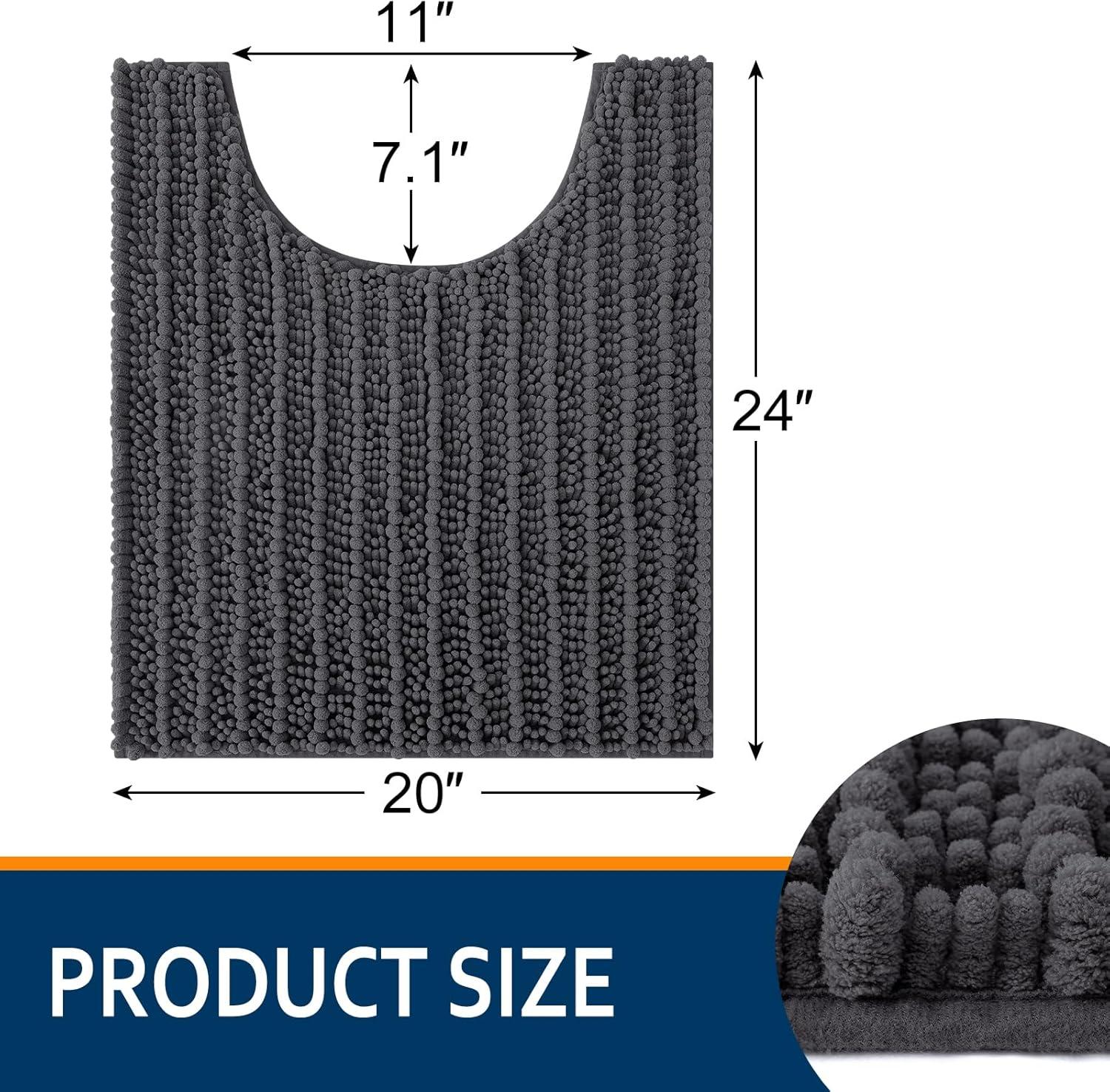 Smiry Bathroom Rugs Set 3 Piece, Soft Absorbent, Non Slip Rubber Backing Machine Washable Quick Dry Chenille Bath Rug Set for Tub, Shower, and Floor 30" x 20"+24" x 16" +U-Shaped 24" x 20" Dark Gray