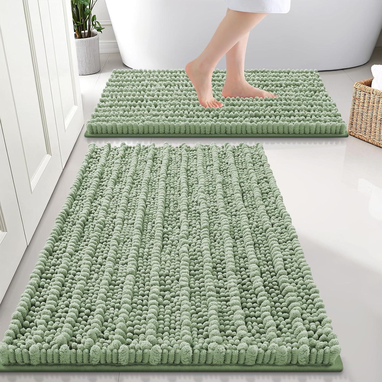 Smiry Bathroom Rugs Set 3 Piece, Soft Absorbent, Non Slip Rubber Backing Machine Washable Quick Dry Chenille Bath Rug Set for Tub, Shower, and Floor 47″ x 20″+30″ x 20″ +U-Shaped 24″ x 20″ Sage Green