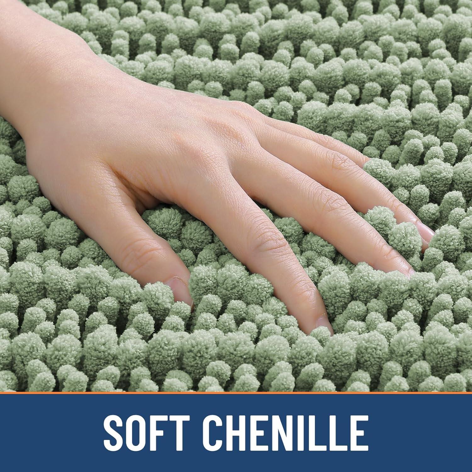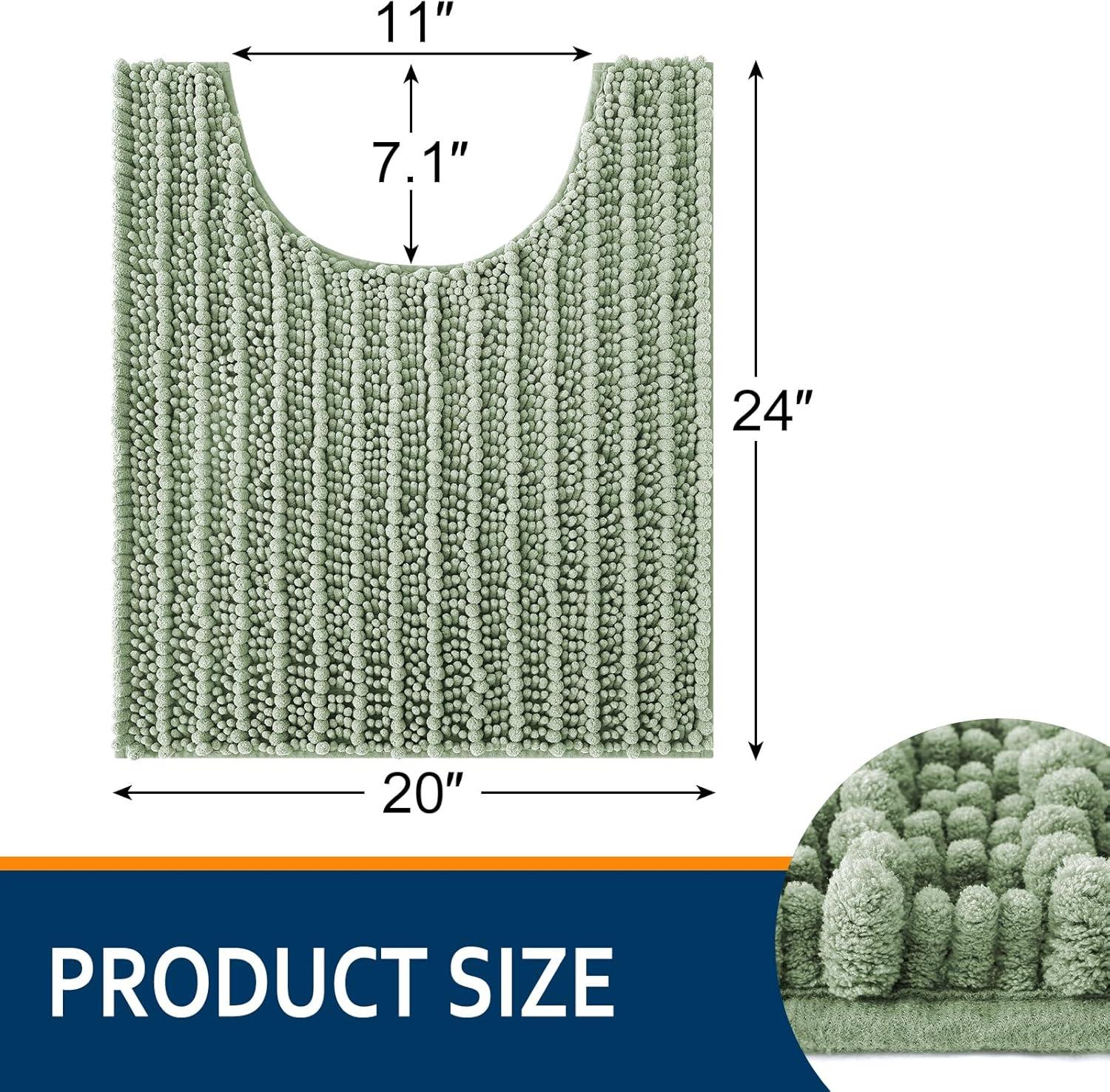 Smiry Bathroom Rugs Set 3 Piece, Soft Absorbent, Non Slip Rubber Backing Machine Washable Quick Dry Chenille Bath Rug Set for Tub, Shower, and Floor 30" x 20"+24" x 16" +U-Shaped 24" x 20" Sage Green