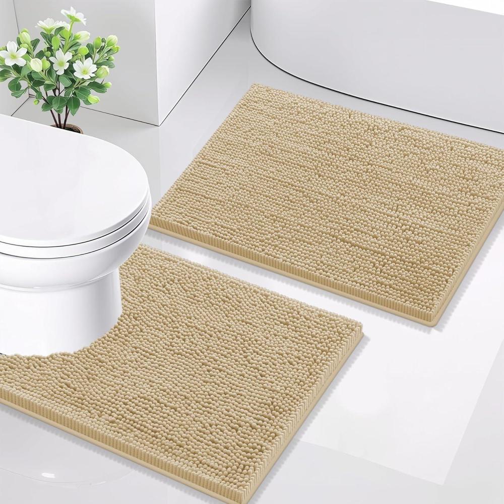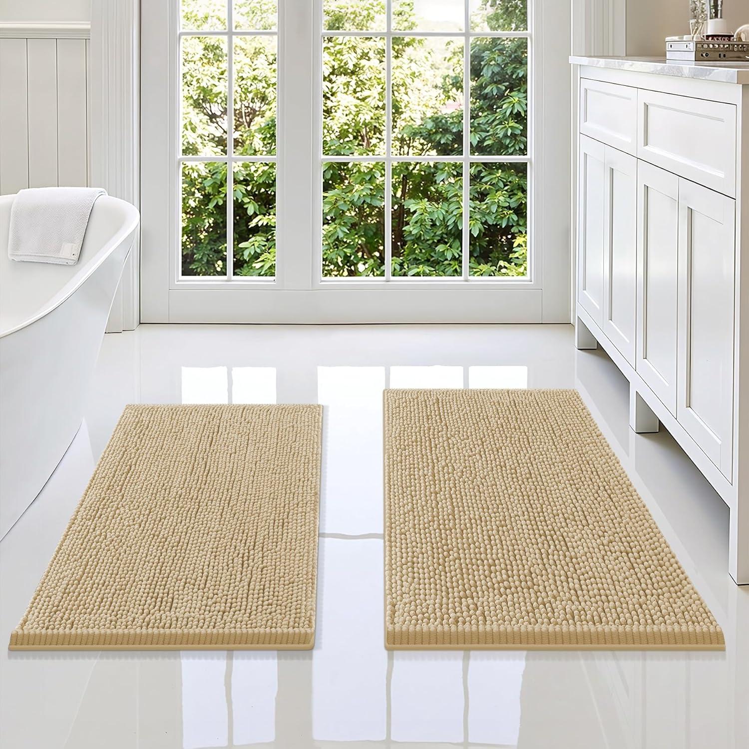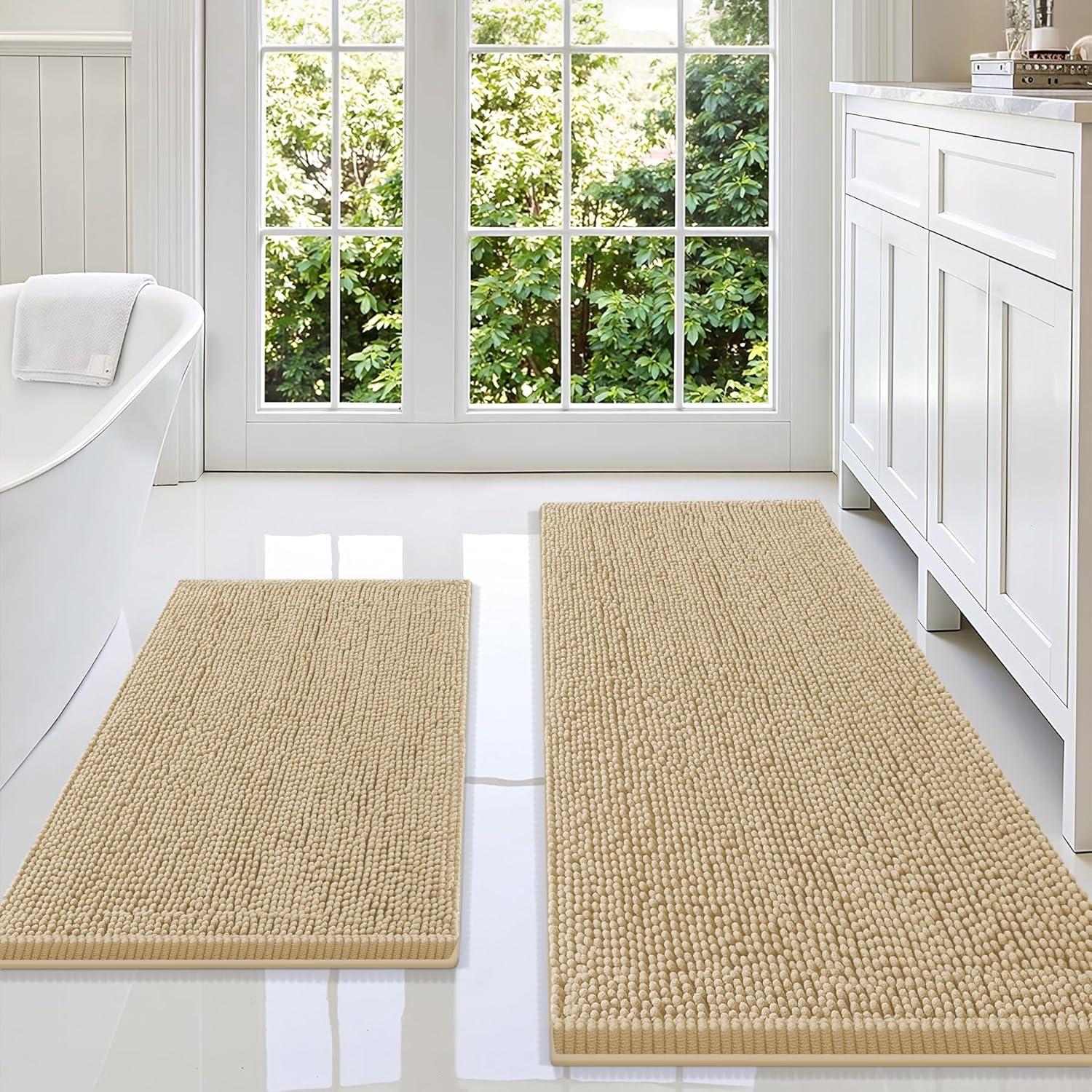 Smiry Bathroom Rugs Sets 2 Piece, Soft Absorbent Chenille Machine Washable Non Slip Shaggy Bath Rug Set for Tub, Shower, and Floor (34×21+30×20, White)(Beige)