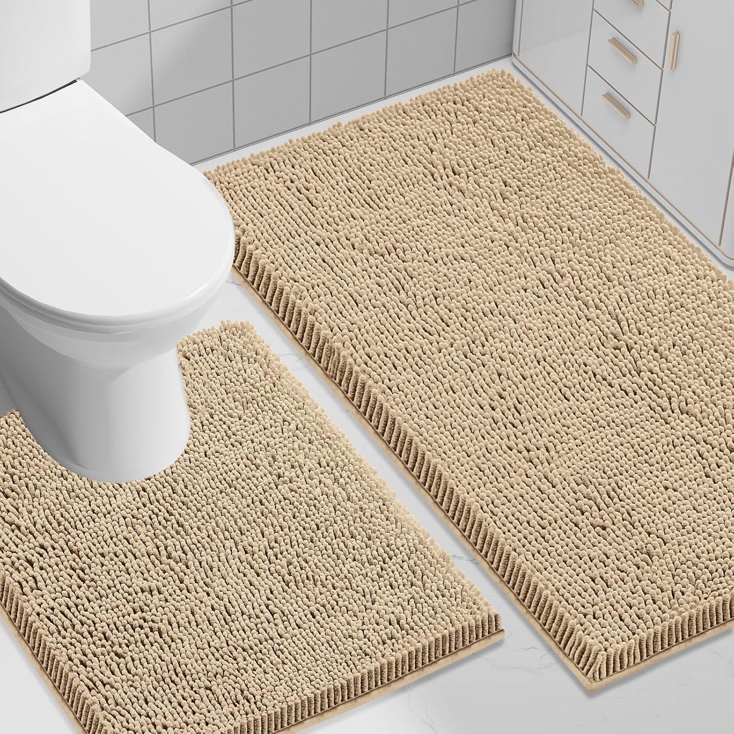 Smiry Bathroom Rugs Sets 2 Piece, Soft Absorbent Chenille Machine Washable Non Slip Shaggy Bath Rug Set for Tub, Shower, and Floor (34x21+30x20, White)(Beige)