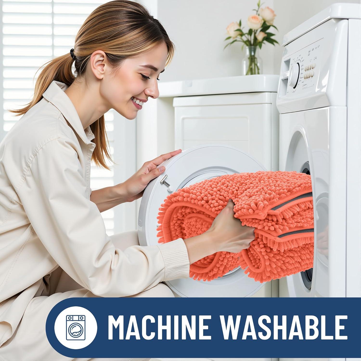 [Easy to Clean & Care] Smiry bathroom rugs are effortlessly maintainable. Toss them in your washing machine and tumble dry on low for a hassle-free cleaning experience. The extra-soft microfiber material remains smooth, even after multiple washes.