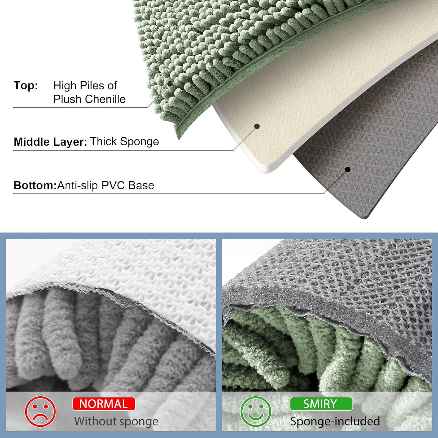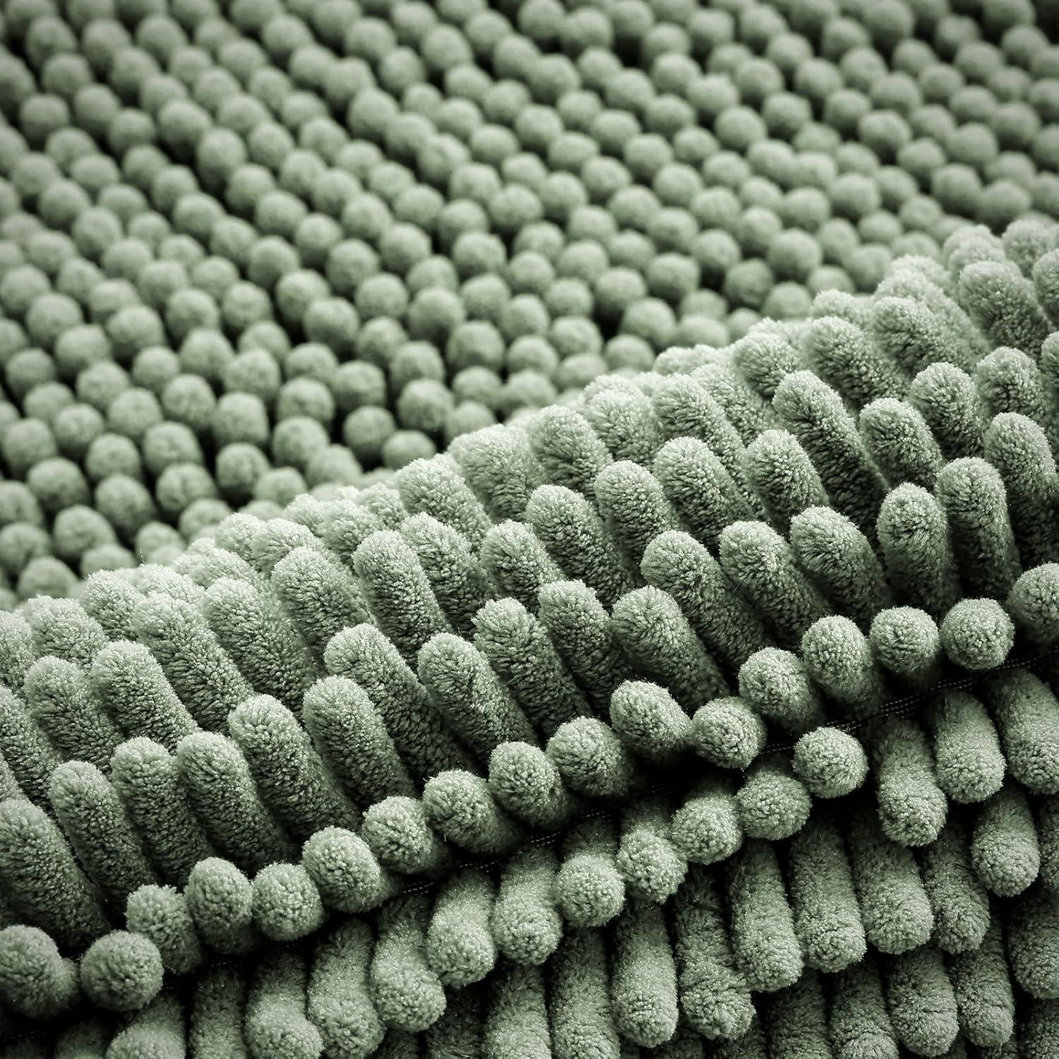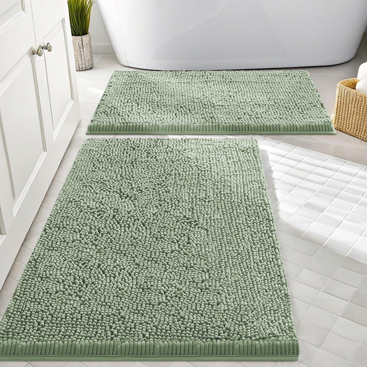 Smiry Bathroom Rugs Sets 2 Piece, Soft Absorbent Chenille Machine Washable Non Slip Shaggy Bath Rug Set for Tub, Shower, and Floor (34x21+30x20, White)(Sage Green)