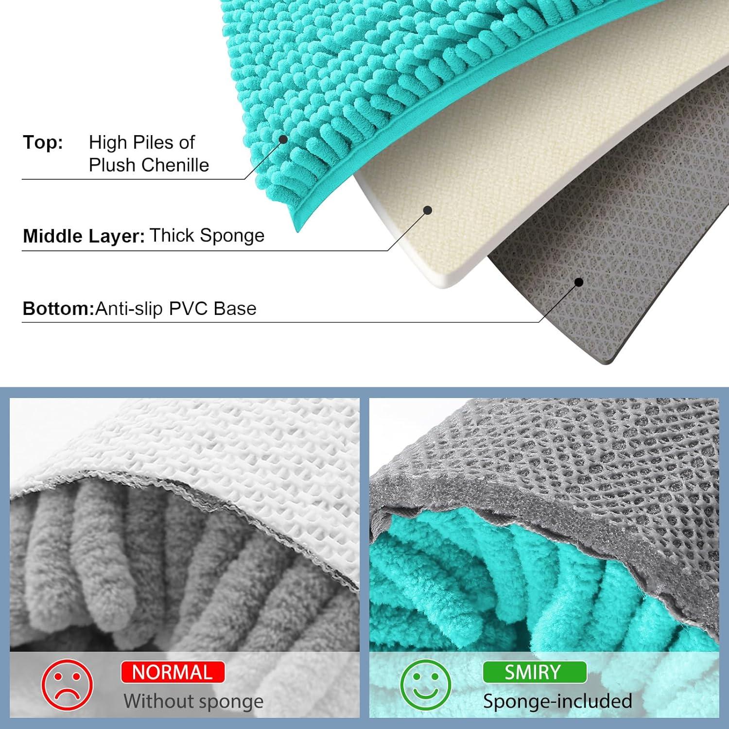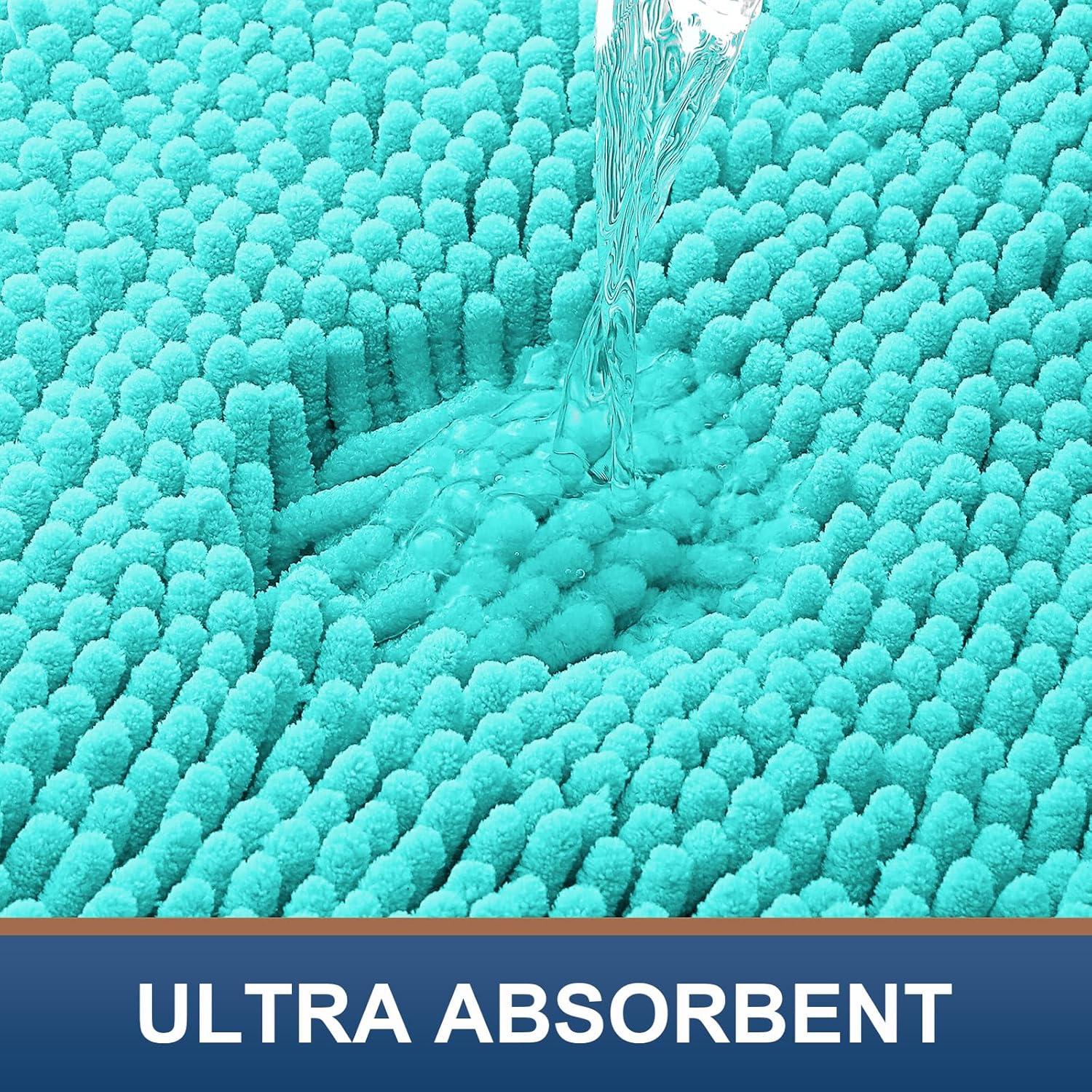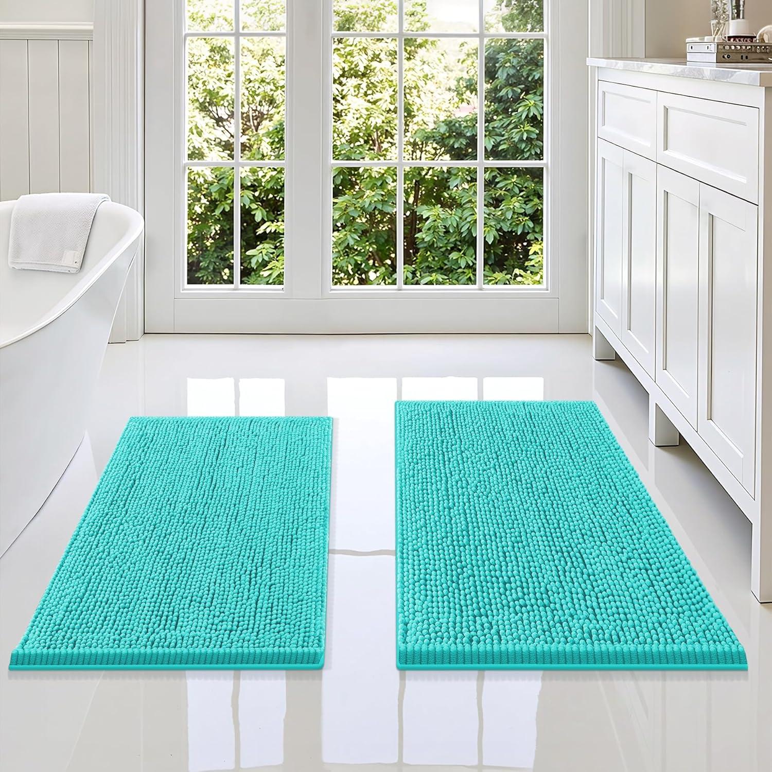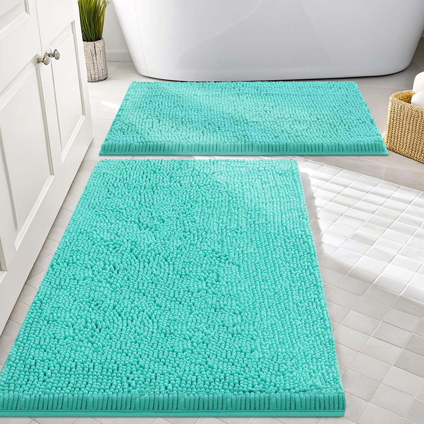 Smiry Bathroom Rugs Sets 2 Piece, Soft Absorbent Chenille Machine Washable Non Slip Shaggy Bath Rug Set for Tub, Shower, and Floor (34×21+30×20, White)(Turquoise)