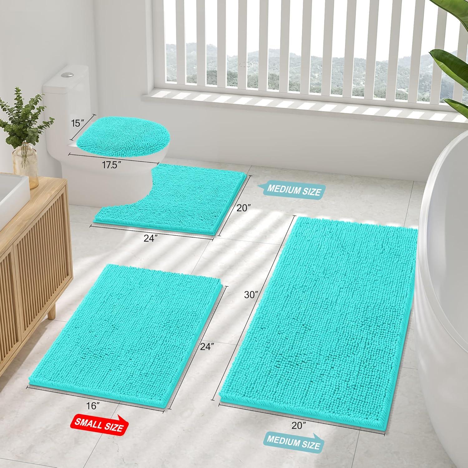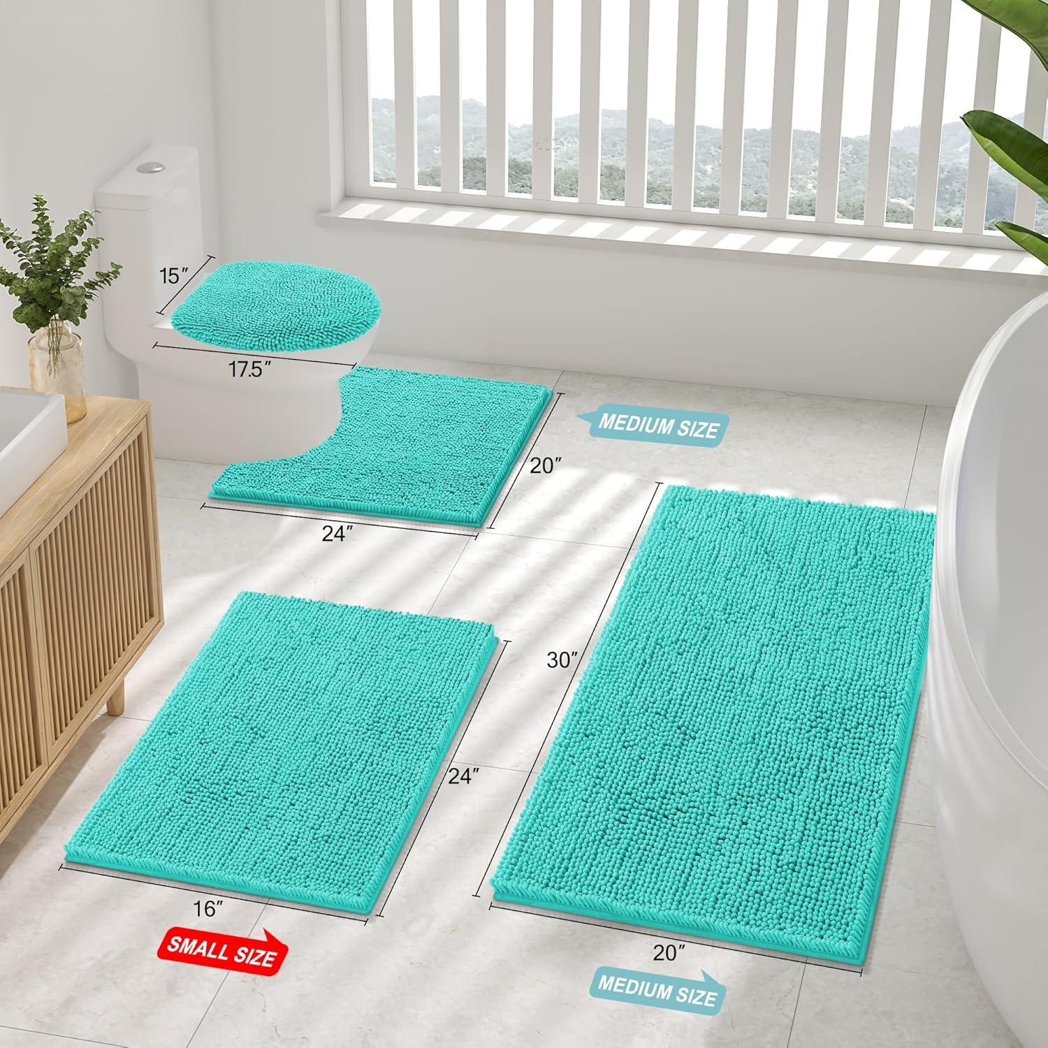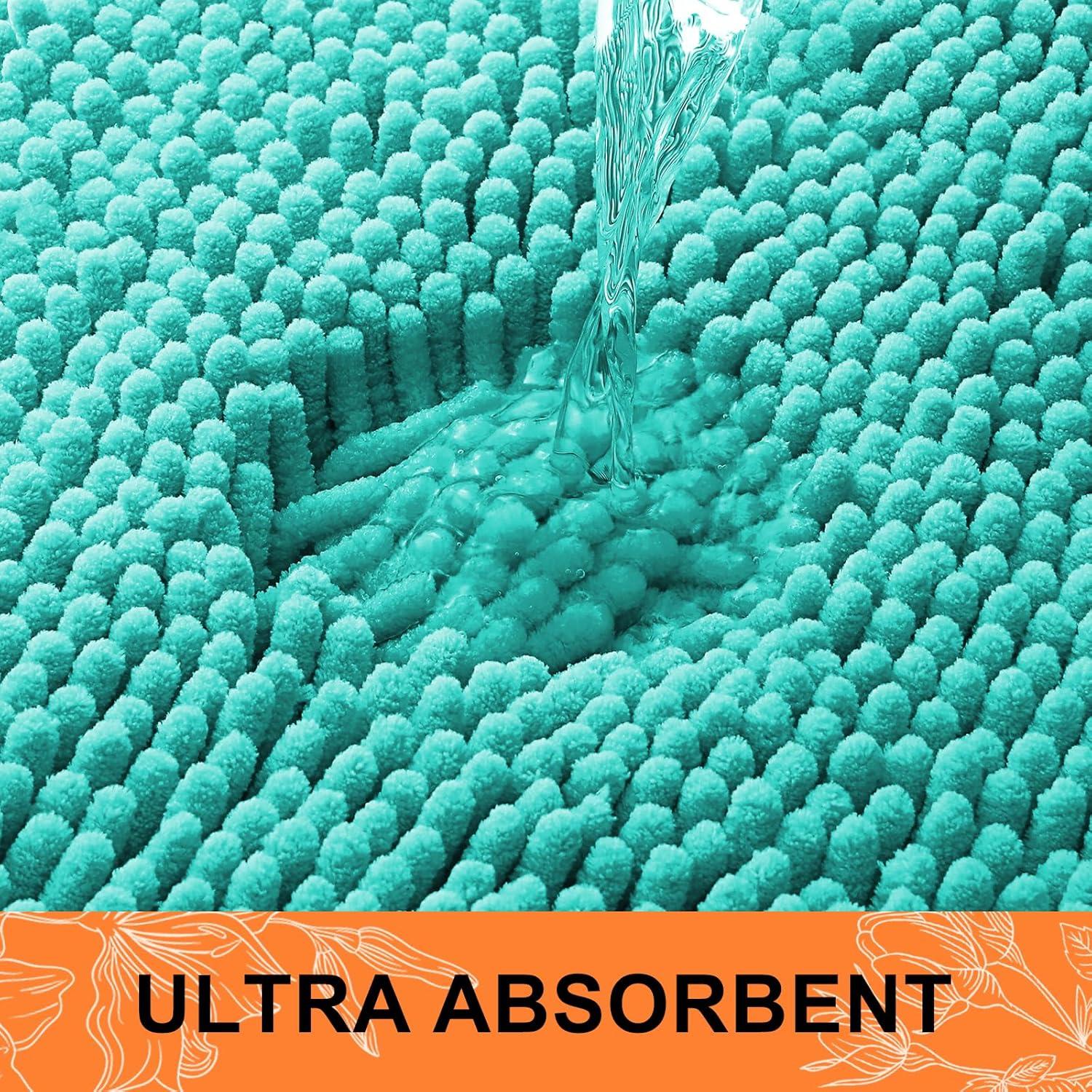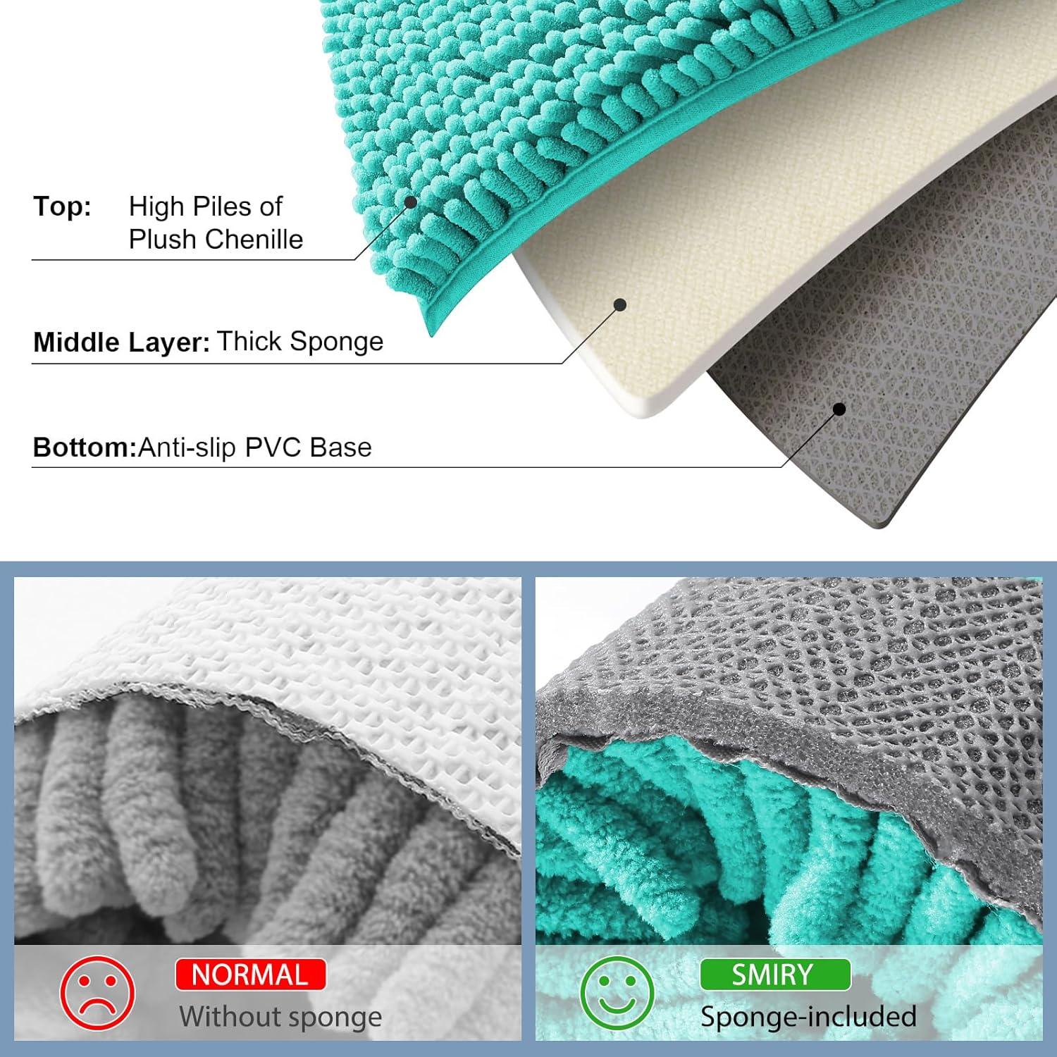 Smiry Bathroom Rugs Sets 2 Piece, Soft Absorbent Chenille Machine Washable Non Slip Shaggy Bath Rug Set for Tub, Shower, and Floor (34×21+30×20, White)(Turquoise)