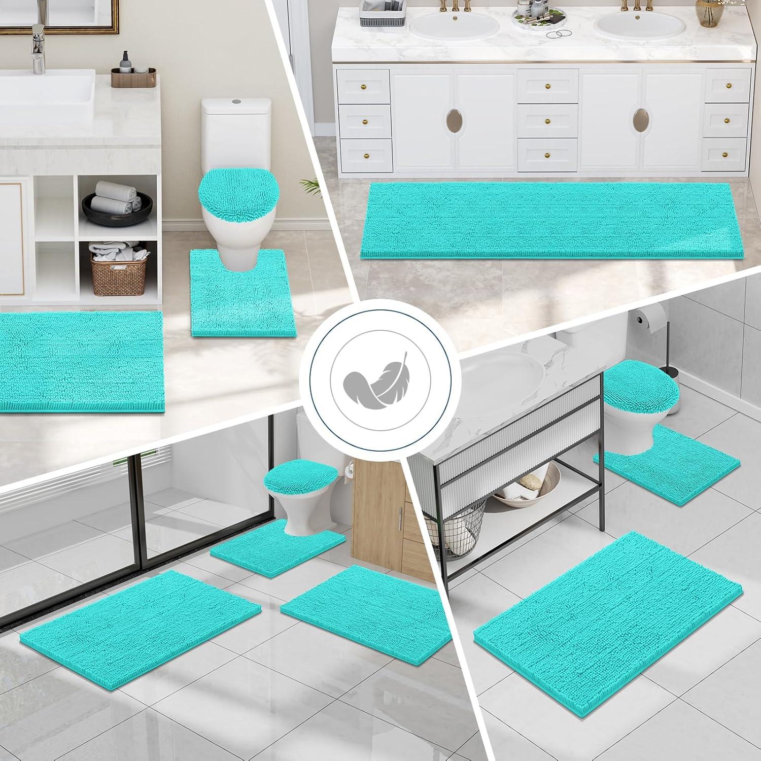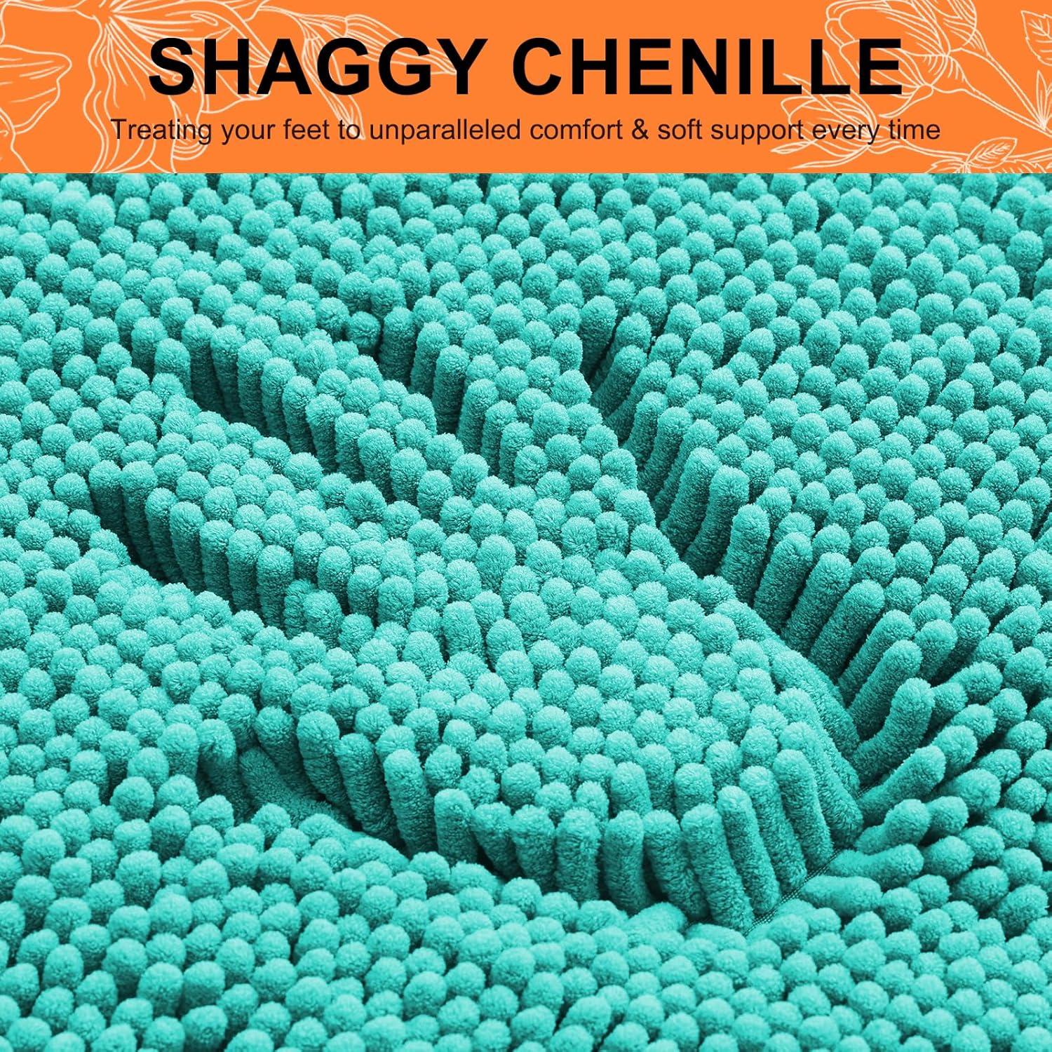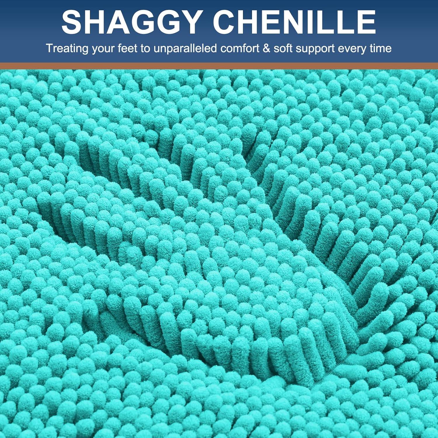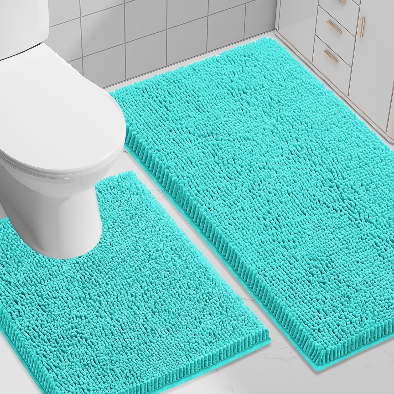 Smiry Bathroom Rugs Sets 2 Piece, Soft Absorbent Chenille Machine Washable Non Slip Shaggy Bath Rug Set for Tub, Shower, and Floor (34x21+30x20, White)(Turquoise)