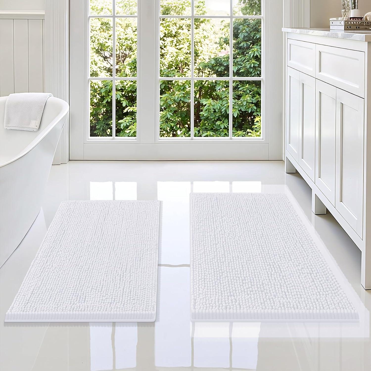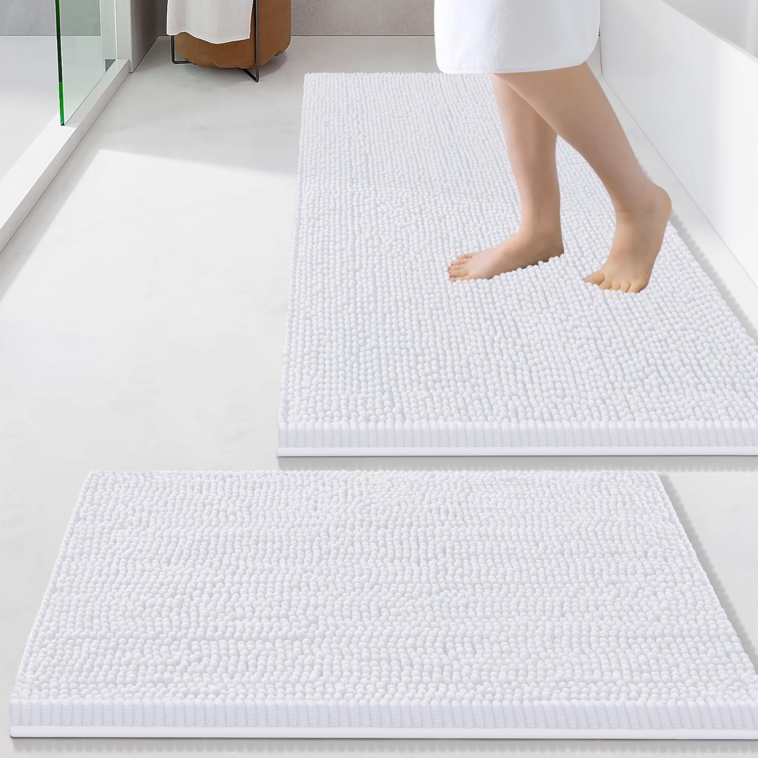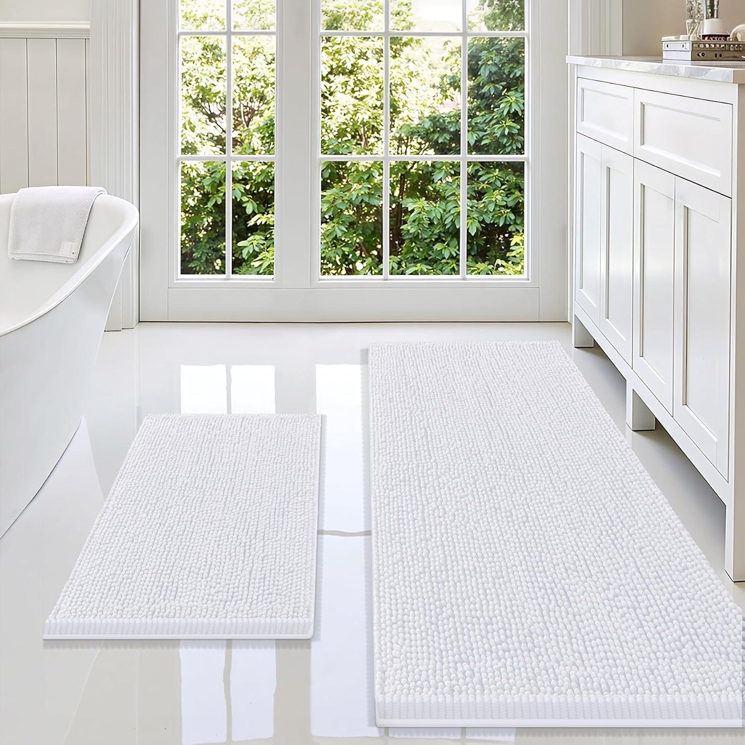 Smiry Bathroom Rugs Sets 2 Piece, Soft Absorbent Chenille Machine Washable Non Slip Shaggy Bath Rug Set for Tub, Shower, and Floor (34x21+30x20, White)(White)