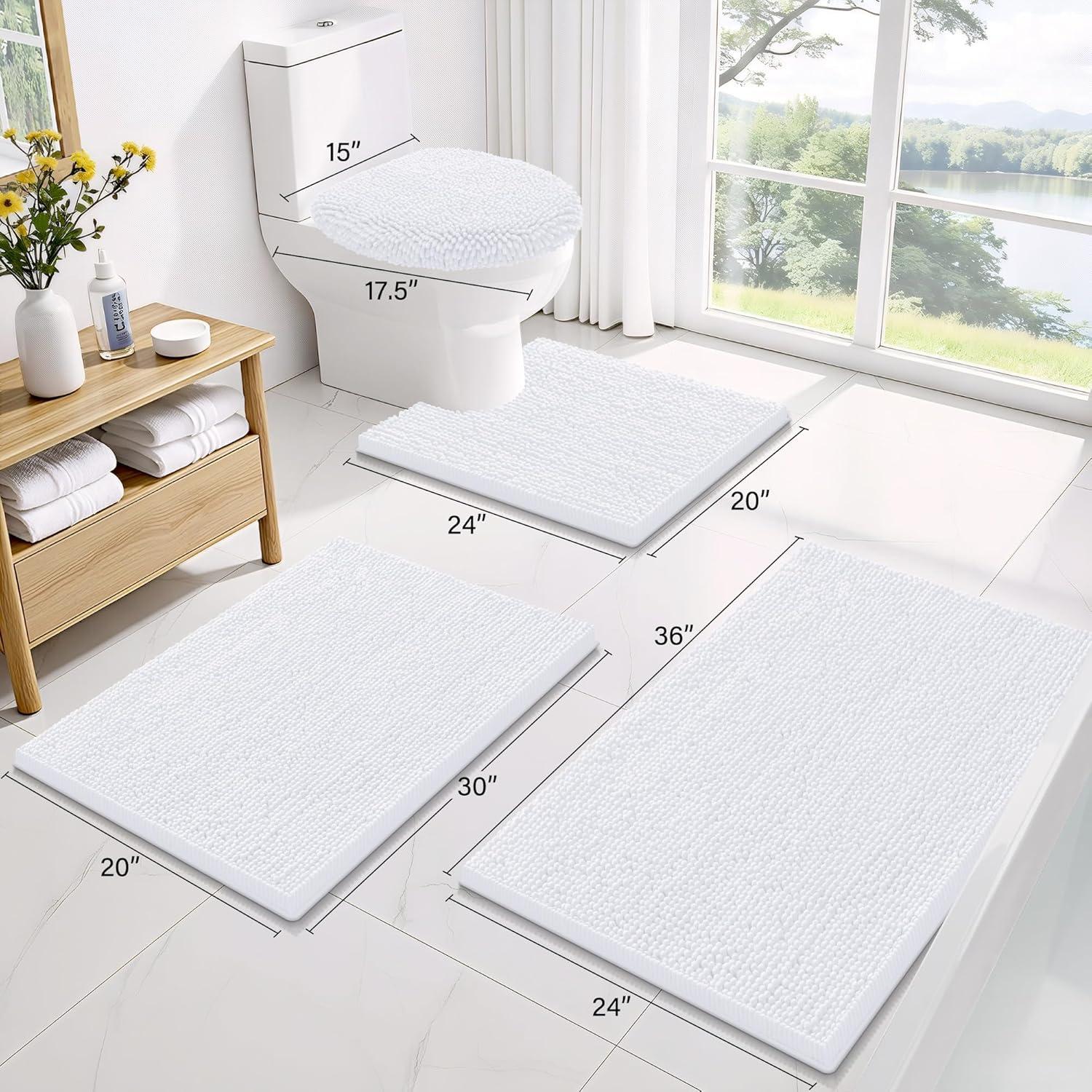 Smiry Bathroom Rugs Sets 3 Piece, Soft Absorbent Chenille Bath Mat and U-Shaped Contour Toilet Rug, Machine Wash Dry Bath Mat Sets for Bathroom Tub and Floor (30″x20″+24″x16″+24″x20″, Grey)(White)