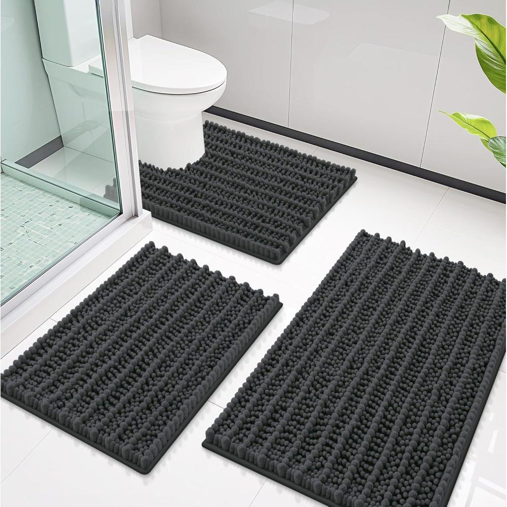 [Soft & Comfortable] bathroom rugs set of 3 are made of well quality, luxurious chenille material. Step onto the plush softness of Smiry luxury bath rugs, treating your feet to unparalleled comfort & soft support every time you exit the shower or bathtub.