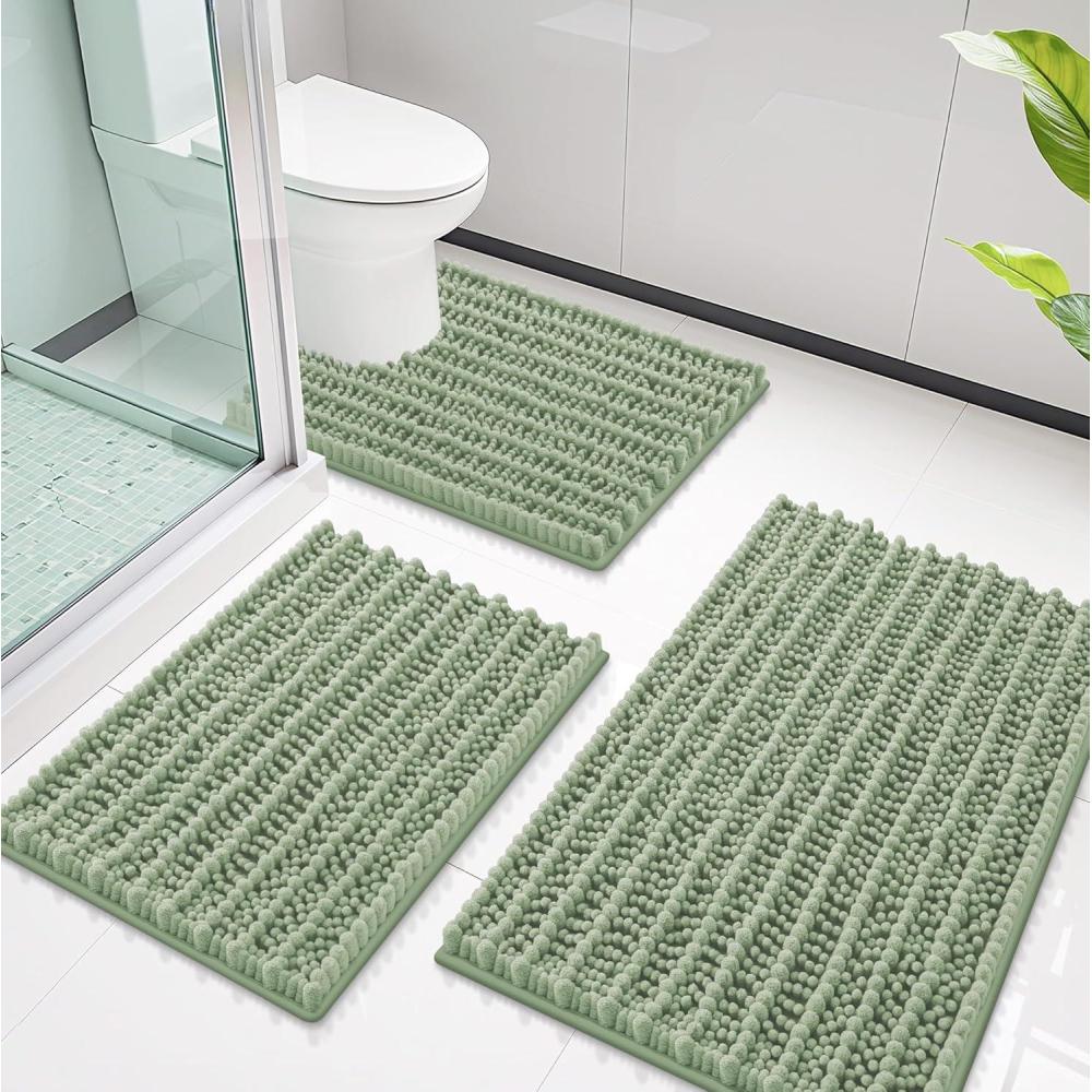[Soft & Comfortable] bathroom rugs set of 3 are made of well quality, luxurious chenille material. Step onto the plush softness of Smiry luxury bath rugs, treating your feet to unparalleled comfort & soft support every time you exit the shower or bathtub.