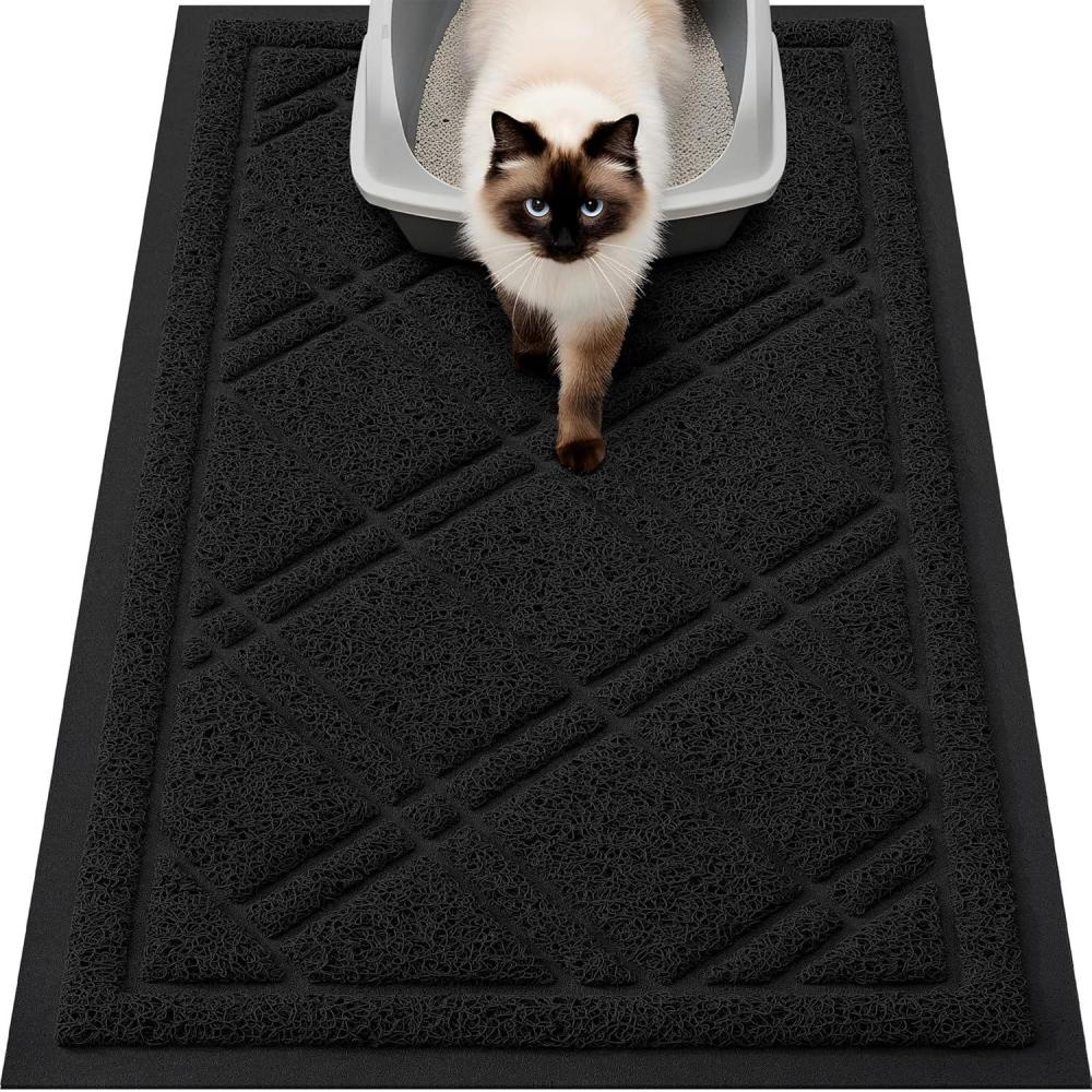 Smiry Cat Litter Box Mat 30x17, Non-Slip Water Resistant Litter Trapping Mat, Easy Clean Less Waste and Urine-Locking Cat Carpet for Indoor, Green(Black)